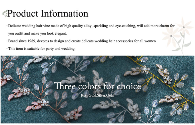 Rose gold leaves hair accessories in unique design and excellent workmanship, made of flowers, crystals, rhinestones, and alloy.
