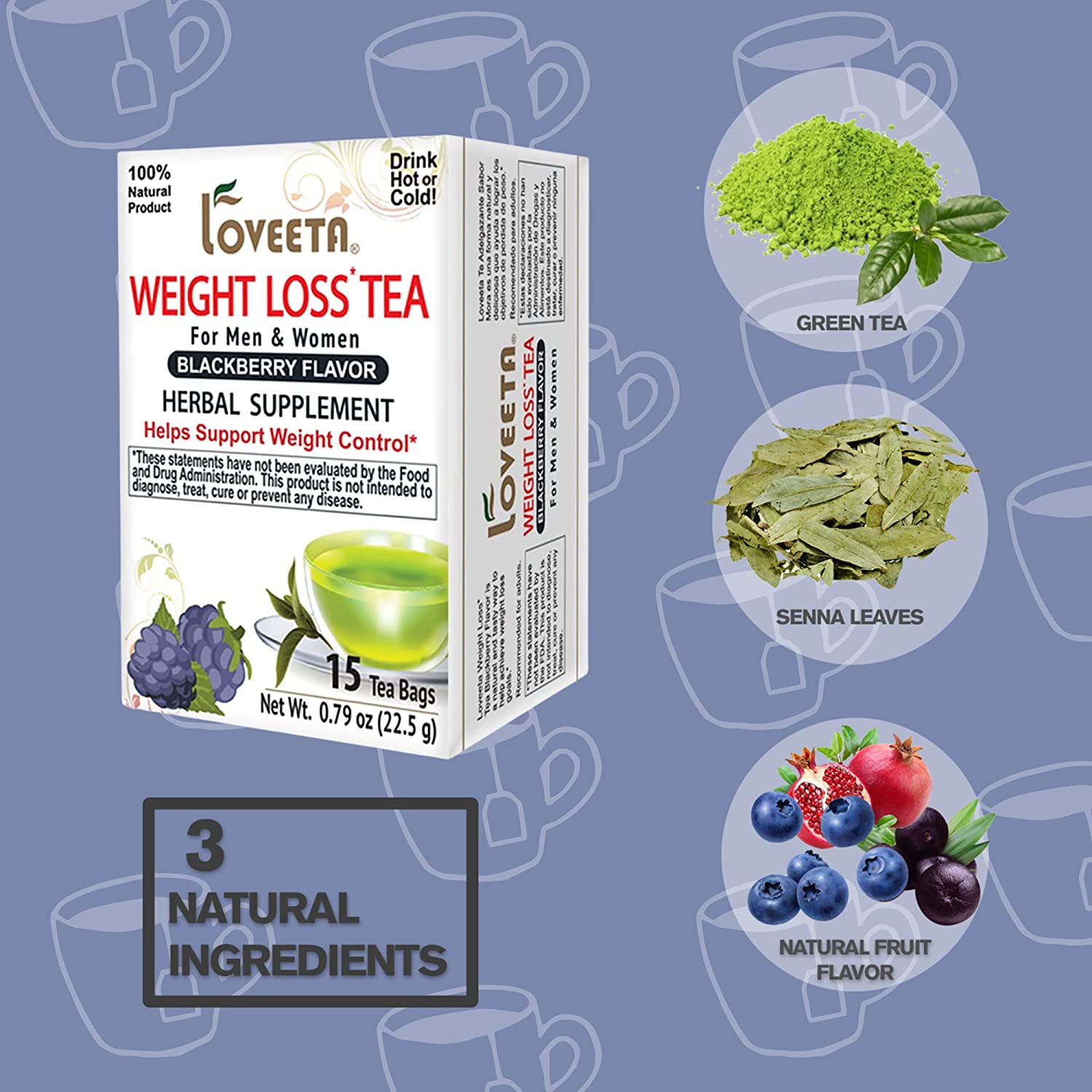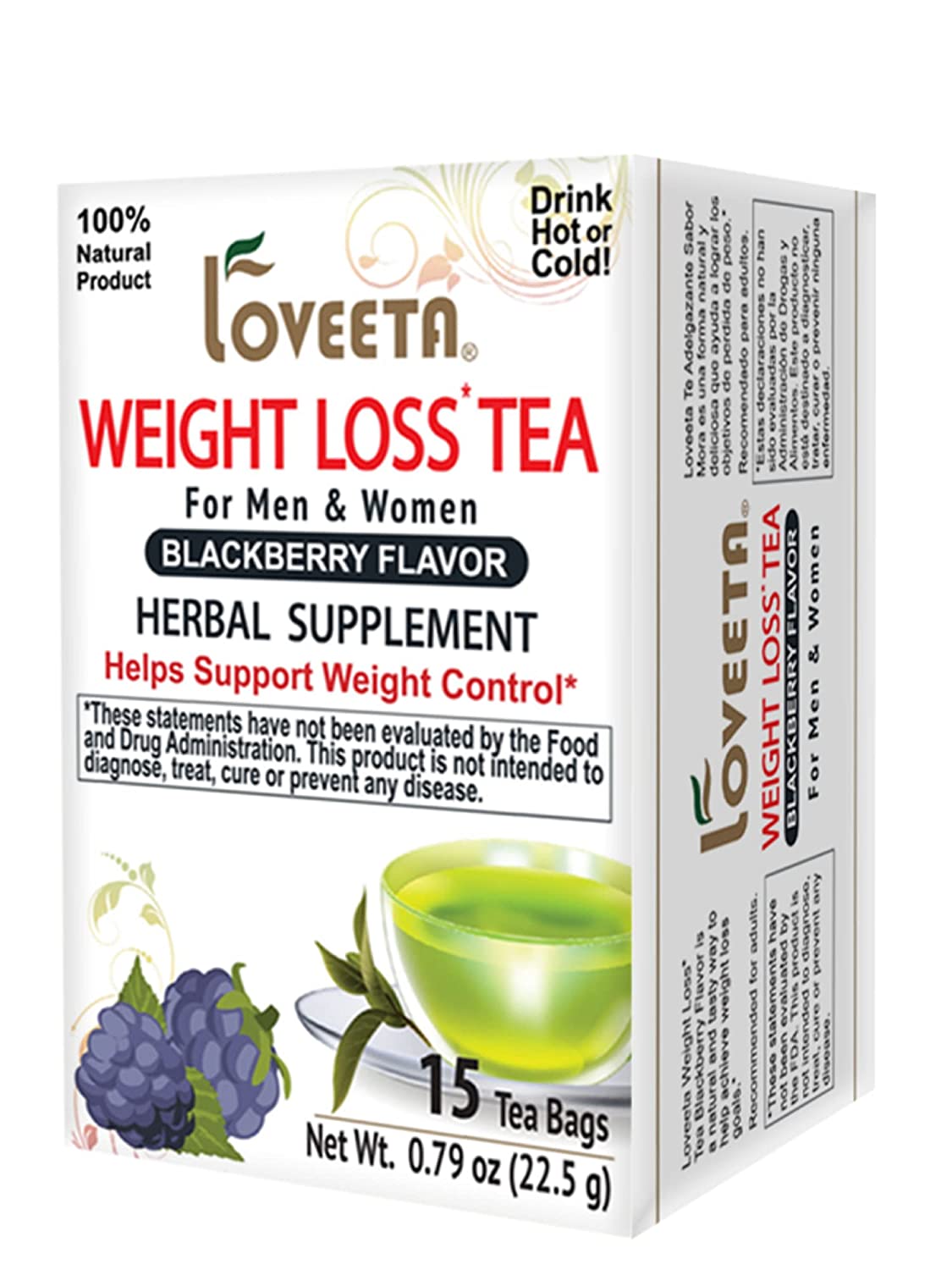 Loveeta Wellness Weight Loss Tea Blackberry - 15 Tea Bags (Gmo Free, Gluten Free, Dairy Free, Sugar Free & 100% Natural)