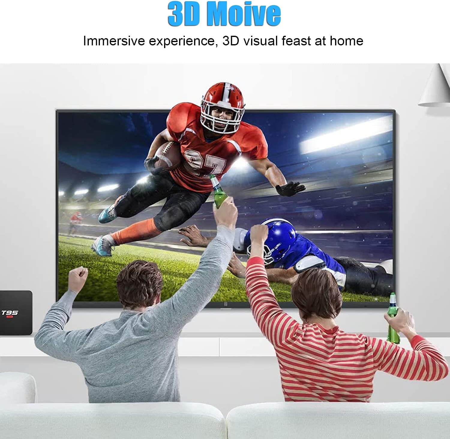 【TV Box 4K 3D H.265】The smart TV box based on H.265 decoding technology saves 50% of bandwidth resources than H.264. You can watch movies fluently with more realistic image details. It supports 4K resolution and 3D movie. You can freely enjoy 3D cinema-like visual feast at home.