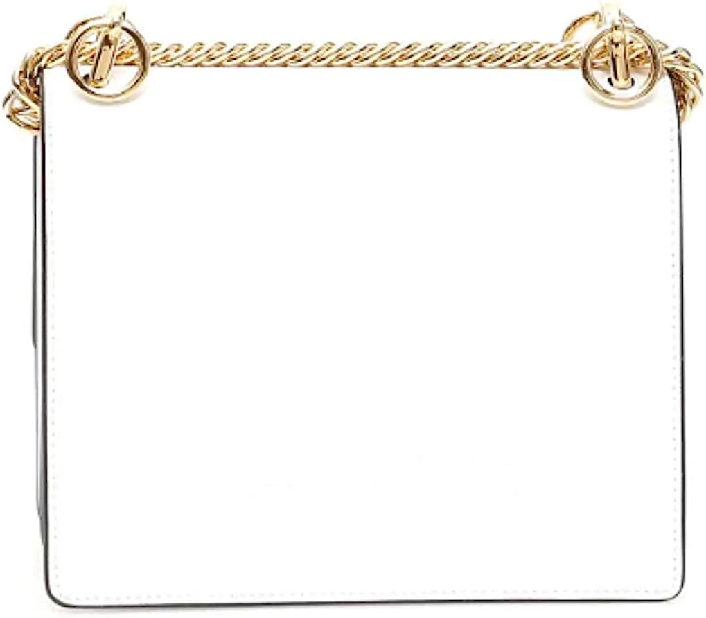 The front flap has a decorative gold, silver, brown and burgundy polished palladium pyramid stud closure. The front opens to a taupe suede partitioned interior with a patch pocket. This cross body is ideal for day or evening use, from Fendi!
