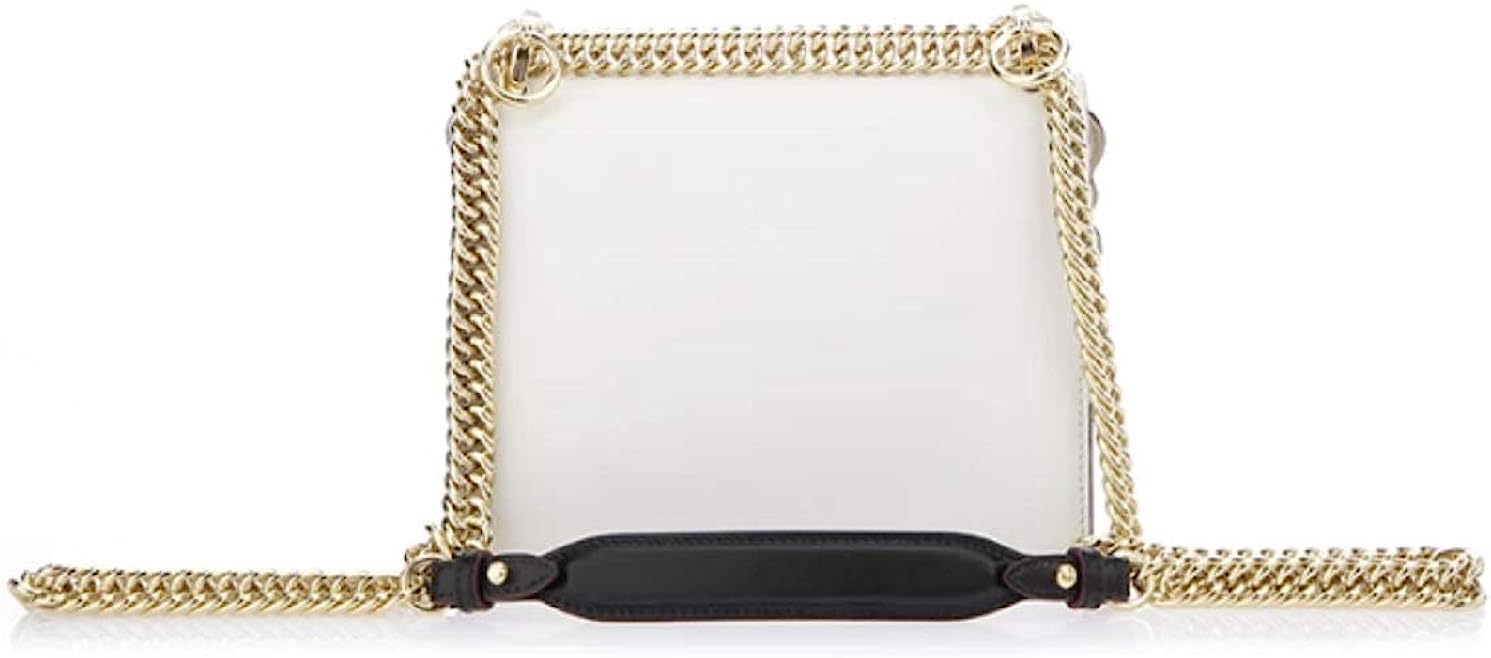 This shoulder bag is crafted of smooth calfskin leather in white. This shoulder bag features faux beige and burgundy flowers on scalloped edges, a shoulder strap and polished gold rings on the anchor to hold bag charms.