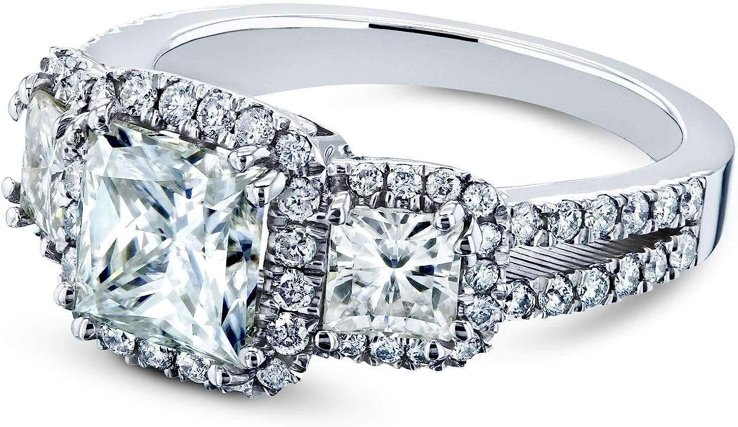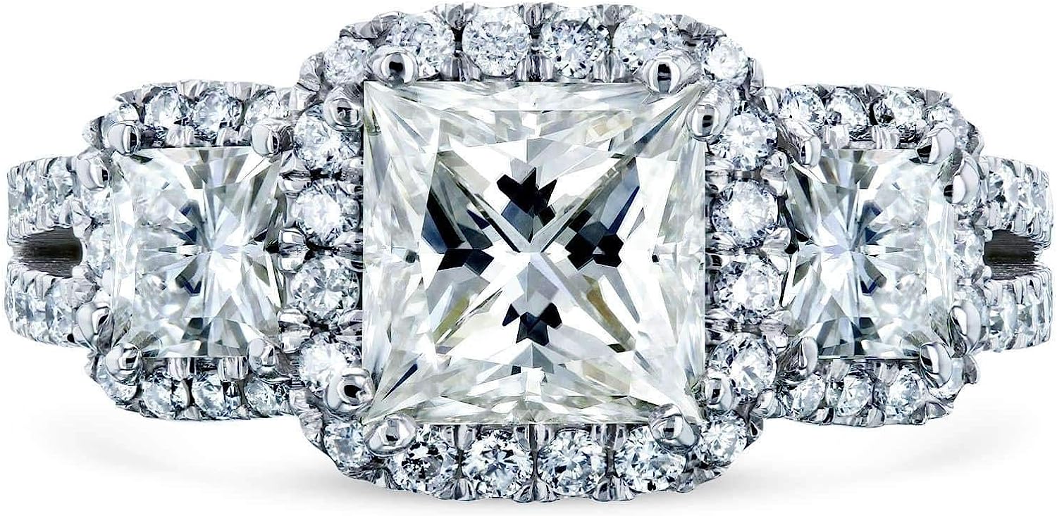 Kobelli 2 4/5-CTW Princess Moissanite Halo 3-Stone Engagement Ring 14k White Gold