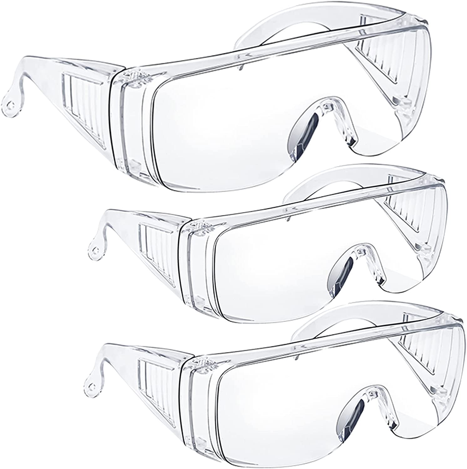 Safety Glasses Goggles Over Eyeglasses Anti Fog for Women Men Safety Goggles Over Glasses Eye Protection Shooting Glasses Anti Scratch UV Resistant Eyewear Goggles Lab Protective Clear 3 Per Box