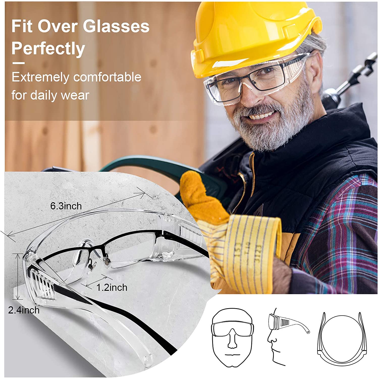 Light-Weight Design for Ultimate Fit and Comfort - The body of these wide safety glasses is made entirely from lightweight plastic, keeping them unobtrusive and light no matter how long you wear them for, and offering just enough flexibility to allow these safety glasses to protect any size of head.Meanwhile,large nose pad design, fit over prescription glasses smoothly.Please trust us,the ultimate fit and comfort experience is enough to make you forget the fatigue of your work