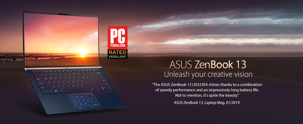 Creativity. Style. Innovation. These are the qualities that define the elegant new ZenBook 13. Everything in this take-anywhere masterpiece is designed to give you the freedom to discover your creative power, including its breathtaking frameless NanoEdge display. You’ll appreciate not only the tremendous power within, but also the thoughtful attention to detail — an exclusive ErgoLift hinge and NumberPad touchpad. Designed to give you the most screen area in the least physical space, the new frameless four-sided NanoEdge design of ZenBook 13 is simply breathtaking: it makes any visuals more immersive, with less distraction for your eyes. The ultraslim bezels are just 2. 8mm thin at the sides, 3. 3mm at the bottom and a mere 5. 9mm at the top to accommodate the camera. And with this ultra-compact display, ZenBook 13 is only about the size of an A4 sheet of paper, weighing in at 2. 6 lbs, making it the perfect business laptop to carry around. With any ZenBook, your comfort is one of our top priorities. ZenBook 13 goes the extra mile with its exclusive ErgoLift hinge, an engineering masterpiece designed to automatically tilt the keyboard to the most comfortable typing position. But that’s not all: the carefully calculated tilt improves cooling and audio performance, too. All of these carefully thought out design choices make this the perfect professional laptop and a great PC alternative to a MacBook!