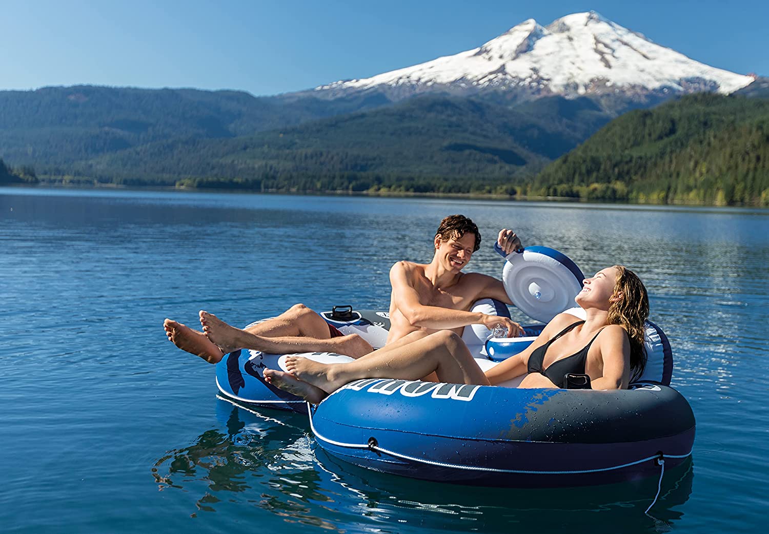 Intex River Run II Inflatable 2-Person Pool Tube Float with Attached Cooler and Repair Kit