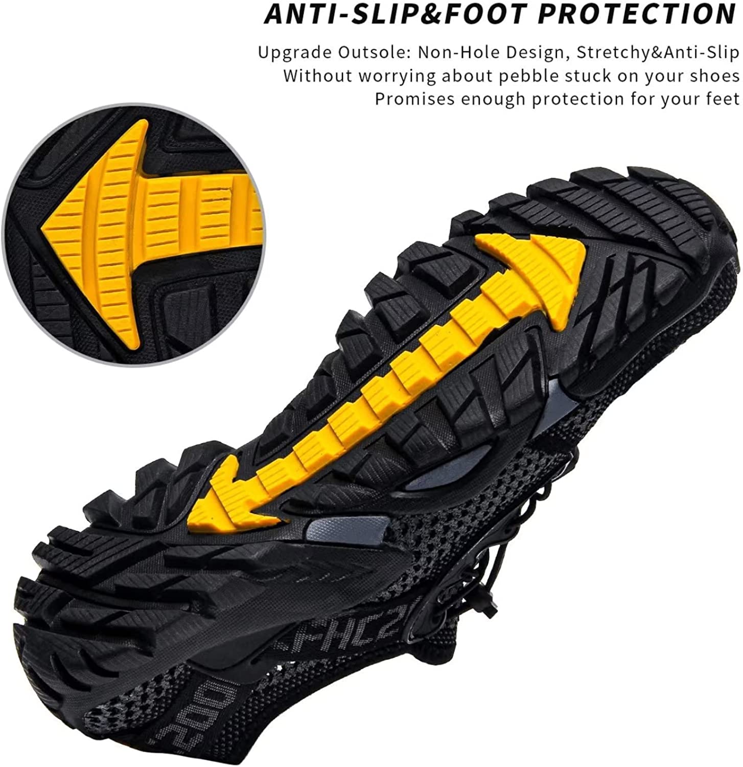 - LIGHTWEIGHT&FOOT PROTECTION: Lightweight stretchy thick rubber sole offers foot protection, enhance stability and comfort. Perfect for beach and water sports.