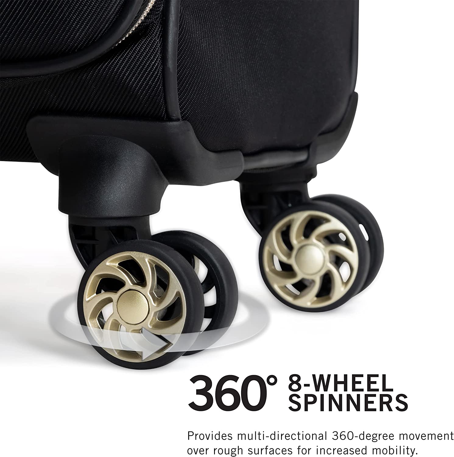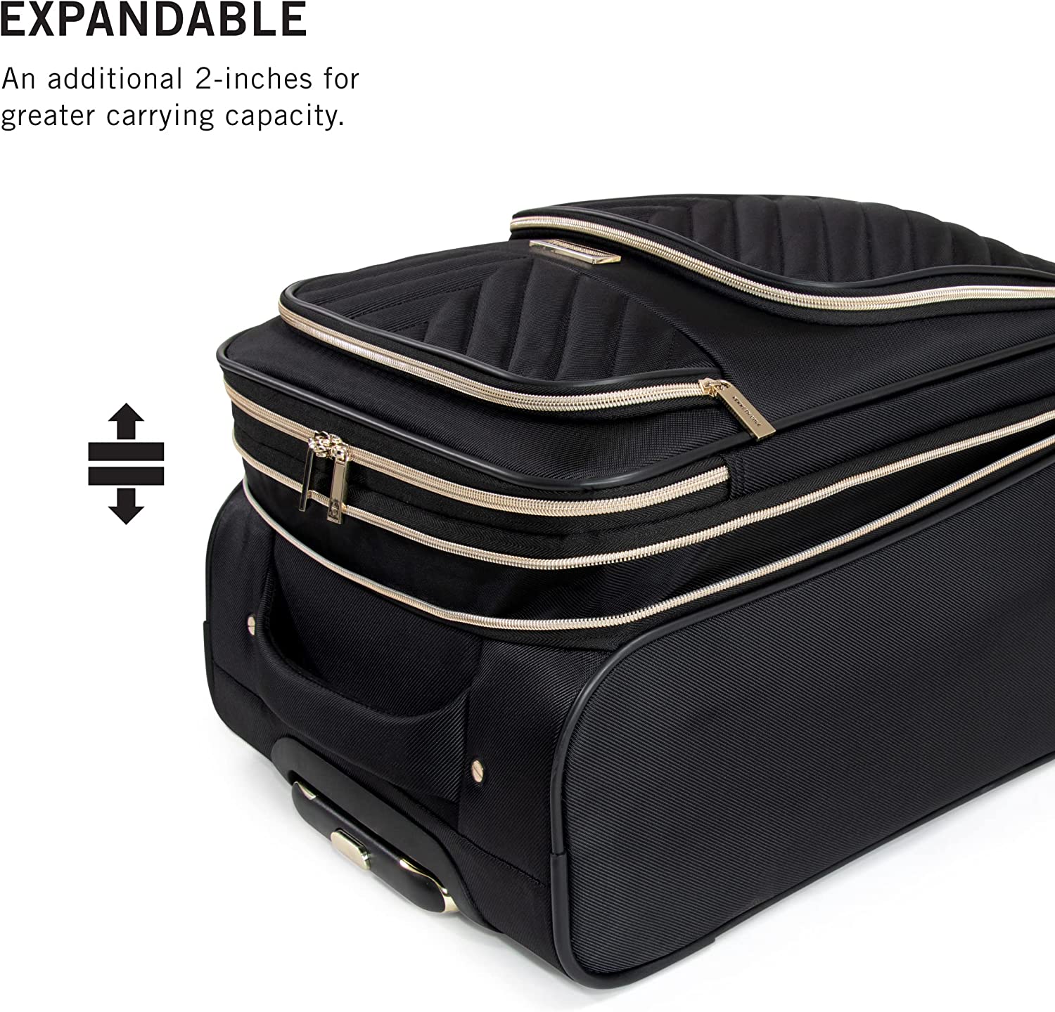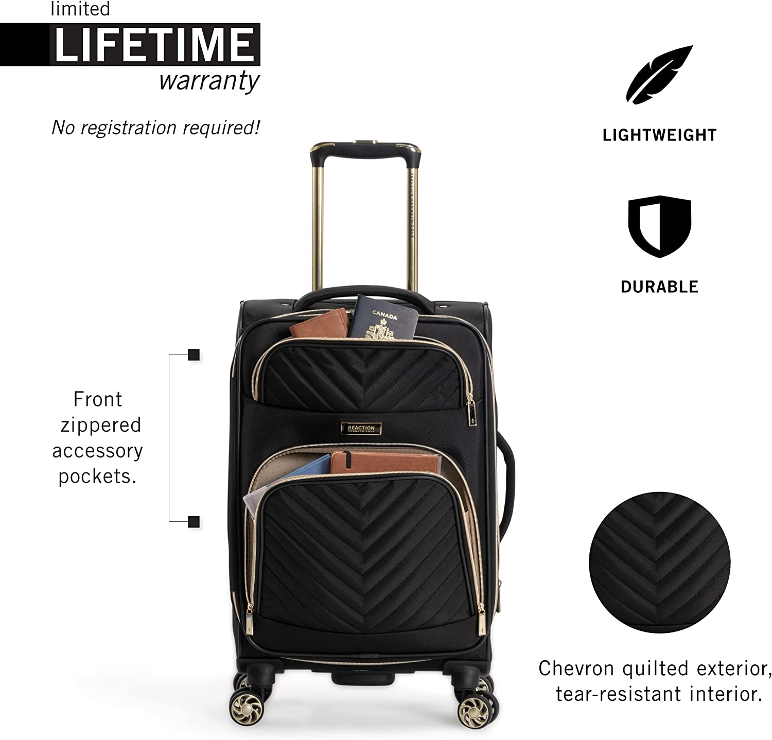Kenneth Cole Reaction Women's Chelsea Luggage Chevron Softside 8-Wheel Spinner Expandable Suitcase, Black, 20-Inch Carry On