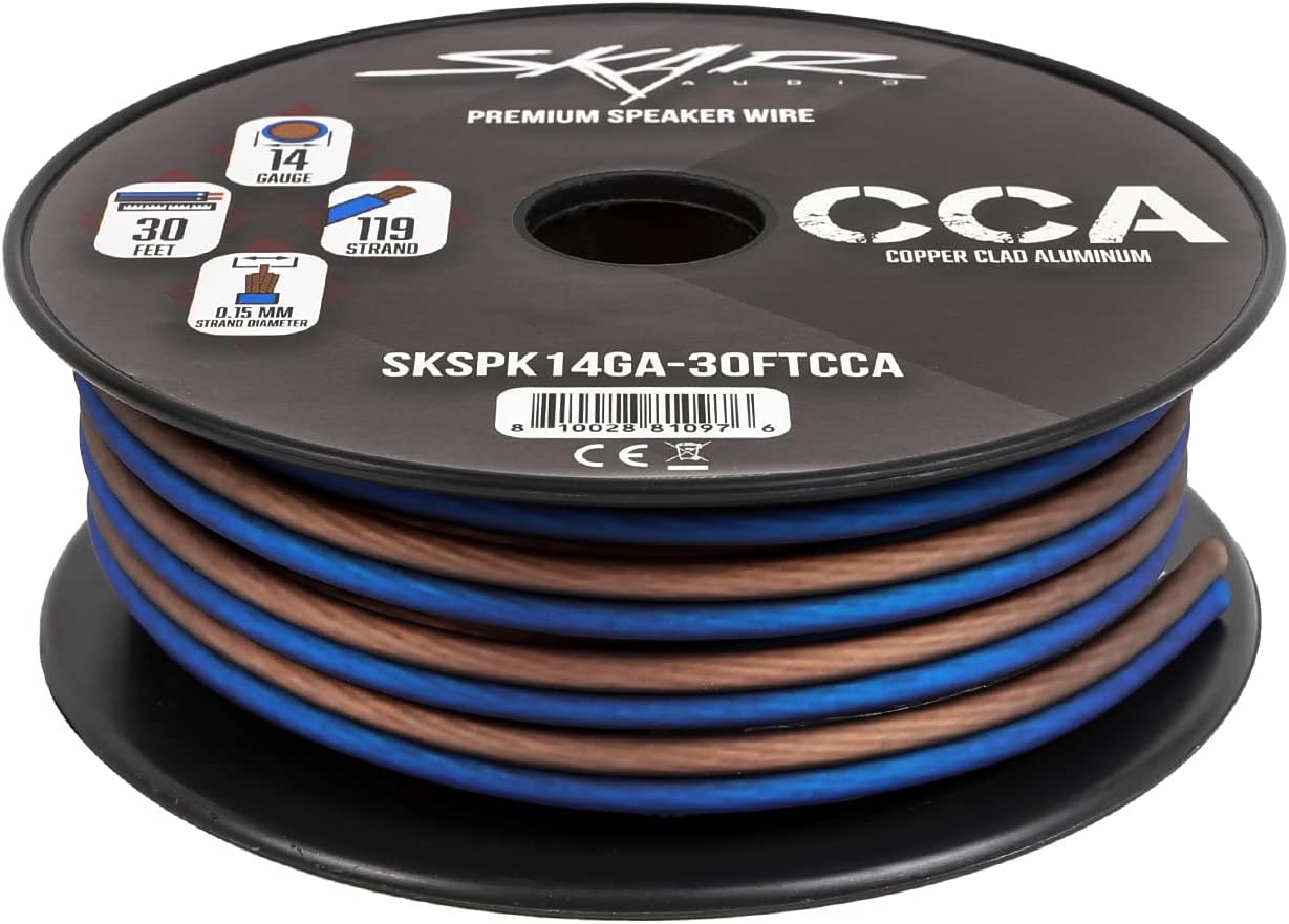 Skar Audio 14 Gauge AWG Audio Speaker Wire - 30 Feet (Blue/Brown)