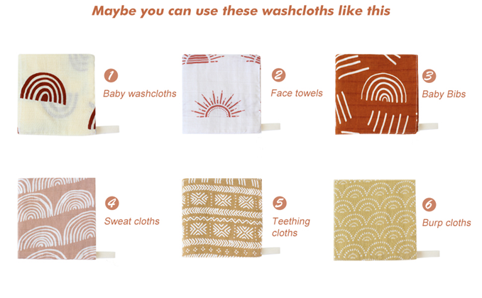 | Best uses | baby washcloths, face towels, bath towels, bibs |