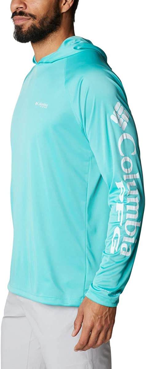 An anglers perfect hoodie: the Columbia PFG Terminal Tackle Hoodie is the ultimate day-out-on-the-boat staple for its quick-drying and sun protection fabric. This hoodie remains lightweight, yet durable, no matter the weather or catch. High quality materials and expert craftsmanship are the backbone of Columbia Men's apparel. The technology featured in this hoodie is necessary for any day out on the water. The exterior layer is made up of a combination of Columbia’s signature protection fabrics: UPF 50 works to block and shield your little one from harmful UVA and UVB sun rays known to cause skin damage; the advanced wicking fabric works to pull moisture away from the skin so sweat can evaporate and you can remain cool. The Columbia Terminal Tackle Hoodie also features subtle style—our signature logo runs along the sleeve and the chest. Columbia offers this fishing hoodie in multiple staple colors and sizes. To ensure the size you choose is right, utilize our sizing chart and the following measurement instructions: For the sleeves, start at the center back of your neck and measure across the shoulder and down to the sleeve. If you come up with a partial number, round up to the next even number. For the chest, measure at the fullest part of the chest, under the armpits and over the shoulder blades, keeping the tape measure firm and level.