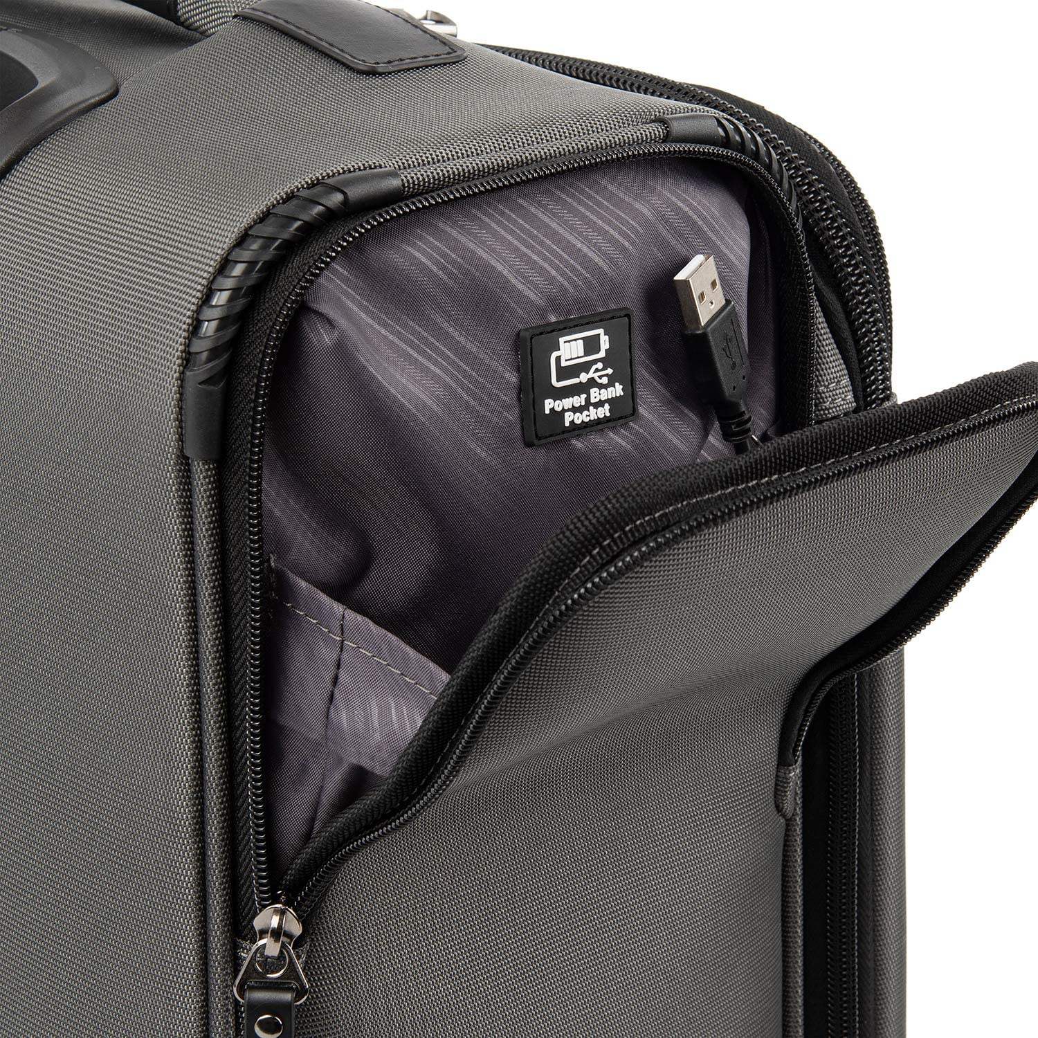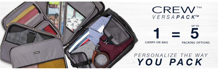 Pack to the max with luggage that is truly all your own. The max carry-on expandable Rollaboard is designed for total packing versatility and customizable with a variety of interchangeable Travelpro exclusive zip-in organizers. Included inside the lid is a removable zip-in garment organizer, ideal for storing folded shirts, dresses and jackets. Also available for purchase separately are four additional coordinating Travelpro exclusive zip-in organizers-a laundry organizer for bathing suits, workout clothes and other damp items, A packing cubes organizer for shorts, shirts and accessories, A suitor organizer to keep hanging clothes wrinkle-free and an all-in-one organizer for wet and dry storage (each sold separately). created for domestic travel on larger aircraft, this bag is sized to max out the sizer bin and fit In the overhead bins of most major yours. Airlines. It also features a tip-resistant zippered expansion to increase packing space up to two inches, but be careful not to overpack the exterior pockets and risk making it too big for the sizer bin. Enjoy total convenience with a built-in USB port and dedicated exterior power bank pocket, exterior padded laptop pocket and removable TSA-compliant toiletries bag that stores perfectly in a same-sized exterior pocket. Two ultra-strong, oversized, high-performance ball bearing wheels roll smoothly over any terrain led by a four-stop, height-adjustable PowerScope handle, while the add-a-bag strap and metal j-hook let you carry additional bags hands-free. Built for professional-grade dependability With robust corner armor, skid guards and heavy-duty wheel housings, crew versapack is the civilian version of the luggage flight crews use, tested to meet the same superior quality and durability standards. This Rollaboard is further backed by the comprehensive built for a lifetime limited warranty with our trusted companion promise.