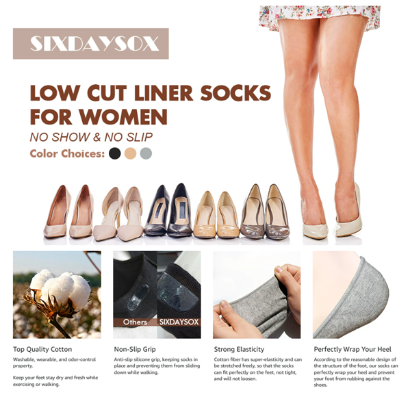 【High Quality Material】SIXDAYSOX womens no show socks are made of 65% premium cotton, 20% polyester, 8% nylon, 2% spandex. The socks are comfortable, durable, moisture wicking and keep your feet dry all day long. Hand washing is recommended.