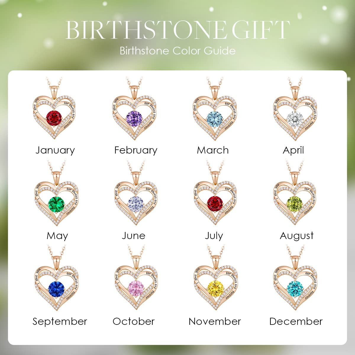 CDE Forever Love Heart Pendant Necklaces for Women 925 Sterling Silver with Birthstone Zirconia, Birthday Mother’s Day Anniversary Jewelry Gift for Women Wife Mom Girlfriend Girls