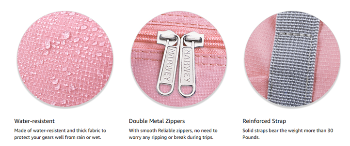✅ WATERPROOF - Solid straps bear the weight more than 45 pounds, no need to worry any ripping or break during trips. Made of waterproof fabric to protect your gears well from rain or wet. No extra shoulder strap is included for model 1112. If you prefer to have a strap, pls refer to model 3112 or 1109.
