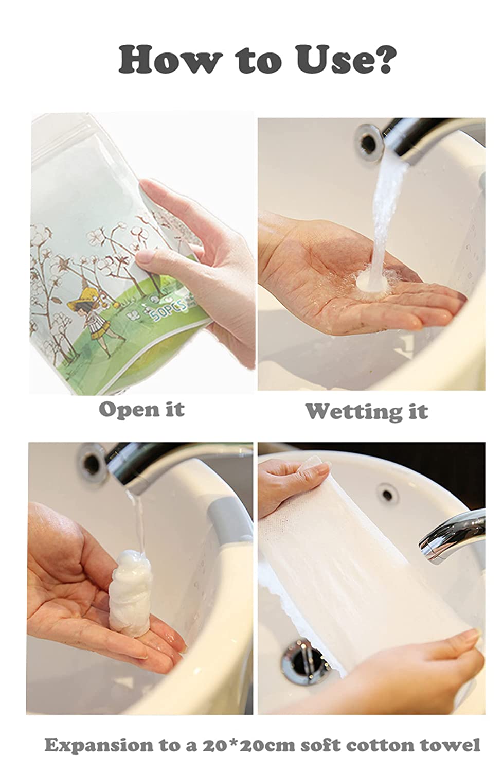 Easy to Use: Just open the package and wetting it, it will absorb the water and expansion to a 7.8 x 7.8 inch size small towel after three seconds.
