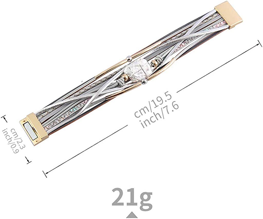【SUITABLE FOR MOST WRISTS】 This women leather bracelet measures about 7.67 inches in length and 0.59 inches in width, fit for most women and girls' wrist. (Approximately fit for 5.5''-6.7" wrists) Because of light weight, it is comfort to wear and you will never feel tired or boring.