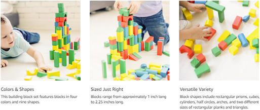 This classic wood block set includes 100 solid-wood blocks painted bright red, blue, yellow, and green. A versatile variety of shapes are included: rectangular prisms, cubes, cylinders, half circles, arches, and two different sizes of rectangular planks and triangles. A set of wooden blocks provides an opportunity for a child to pass the hours constructing towers, castles, towns, and more; Designed for children ages 2 and up, this set offers the opportunity for younger kids to practice their fine motor skills and experiment with the laws of physics while giving older kids an outlet for their creativity. Parents will appreciate the safe, durable construction. Though they're made of solid wood, these blocks are light in weight, which makes them safer for small children. The blocks have rounded edges and a smooth painted finish that won't splinter with play. Our wooden building blocks set is designed for kids entertainment but also introduces early math concepts, and helps children develop good patience and strong motor skills.