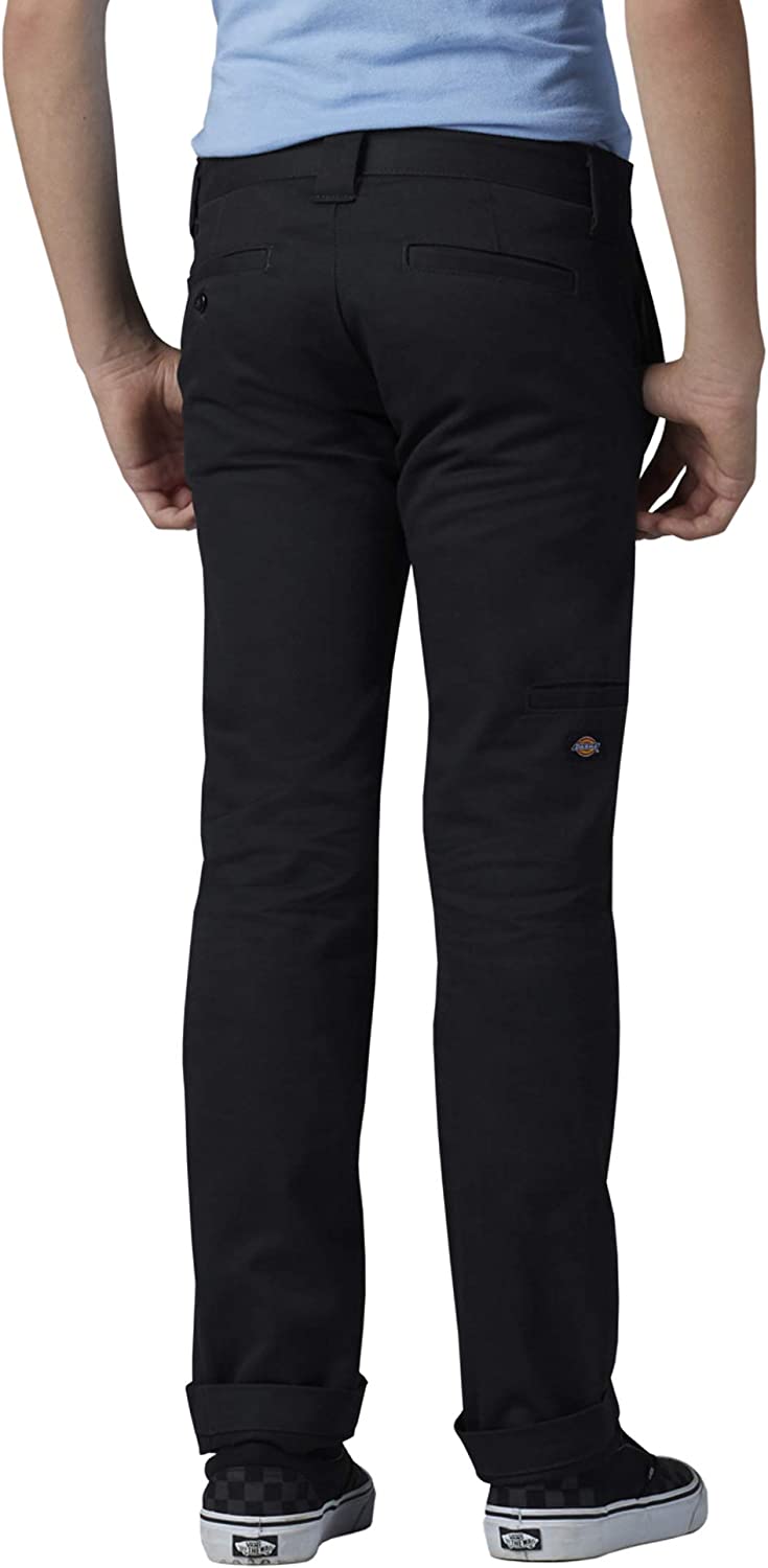 Durability matters for boys on-the-go and Dickies Boy’s Skinny Straight Double Knee Pants are the perfect way to keep up with him. Made with a double-knee design, they keep him protected and hold up longer than regular pants. Made from brushed twill, the small amount of spandex combines with Flex fabric to let him move throughout his day. Stain release and wrinkle resistance keeps him looking clean and crisp no matter what he gets into on a daily basis.