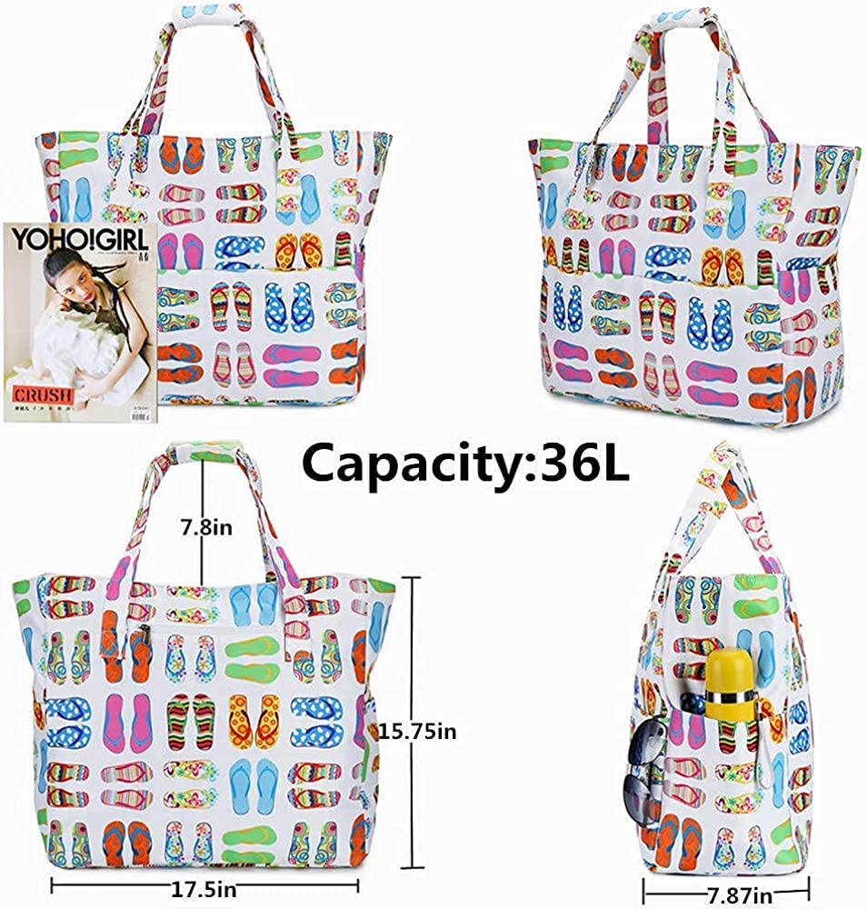 Waterproof sandproof beach bag has tons of pockets and space for your towels, swim suits, flip flops, water bottles, glasses, sunblock, toys and any other things you'd like to take with you to the beach or pool, and interior pocket to place keys, your wallet or phone and other valuables