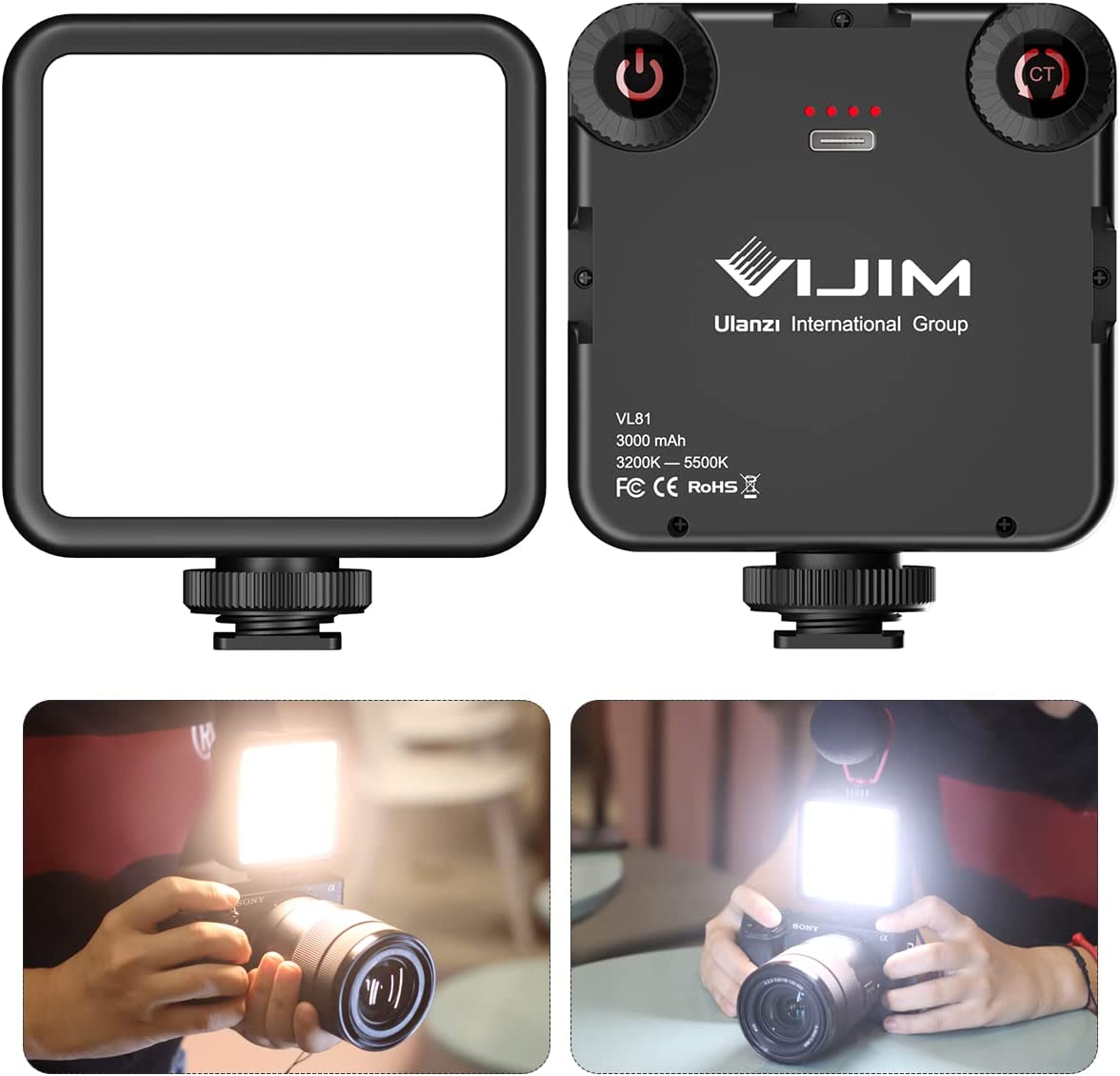 3 Cold Shoe Mount:The VL81 camera light is designed with 3 cold shoe, enable to connect multiple lights for brighter lighting; and it can be mounted a microphone, work as vlog filming light for gopro camera dslr iphone smartphone DJI Osmo Mobile