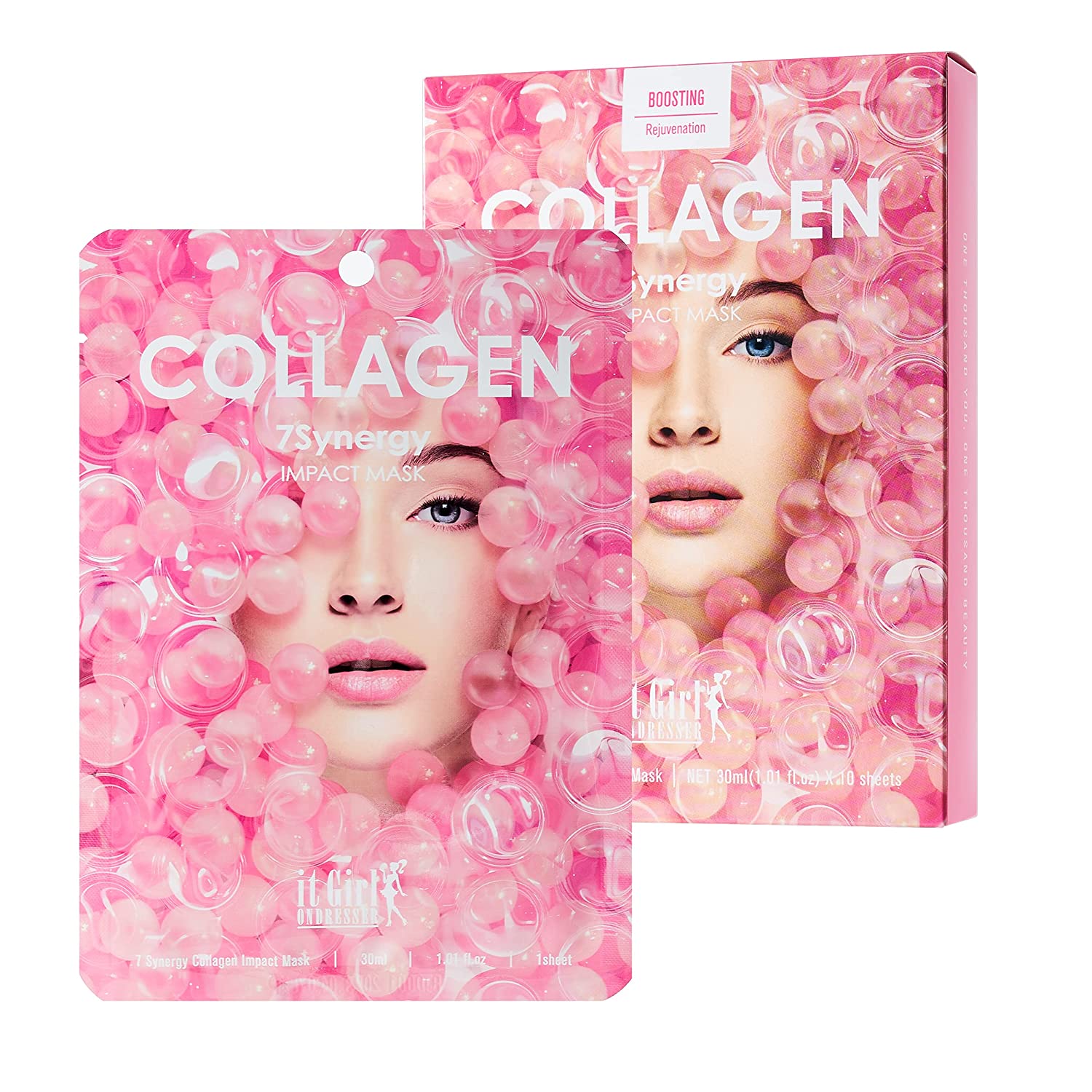 IT GIRL ONDRESSER Collagen Face Mask I Collagen Mask I 7Synergy Boosting Rejuvenation Face Mask I Face Sheet Mask I Korean Face Masks Skincare I Face Mask Beauty Collagen Skin Care Mask | 10 sheets
