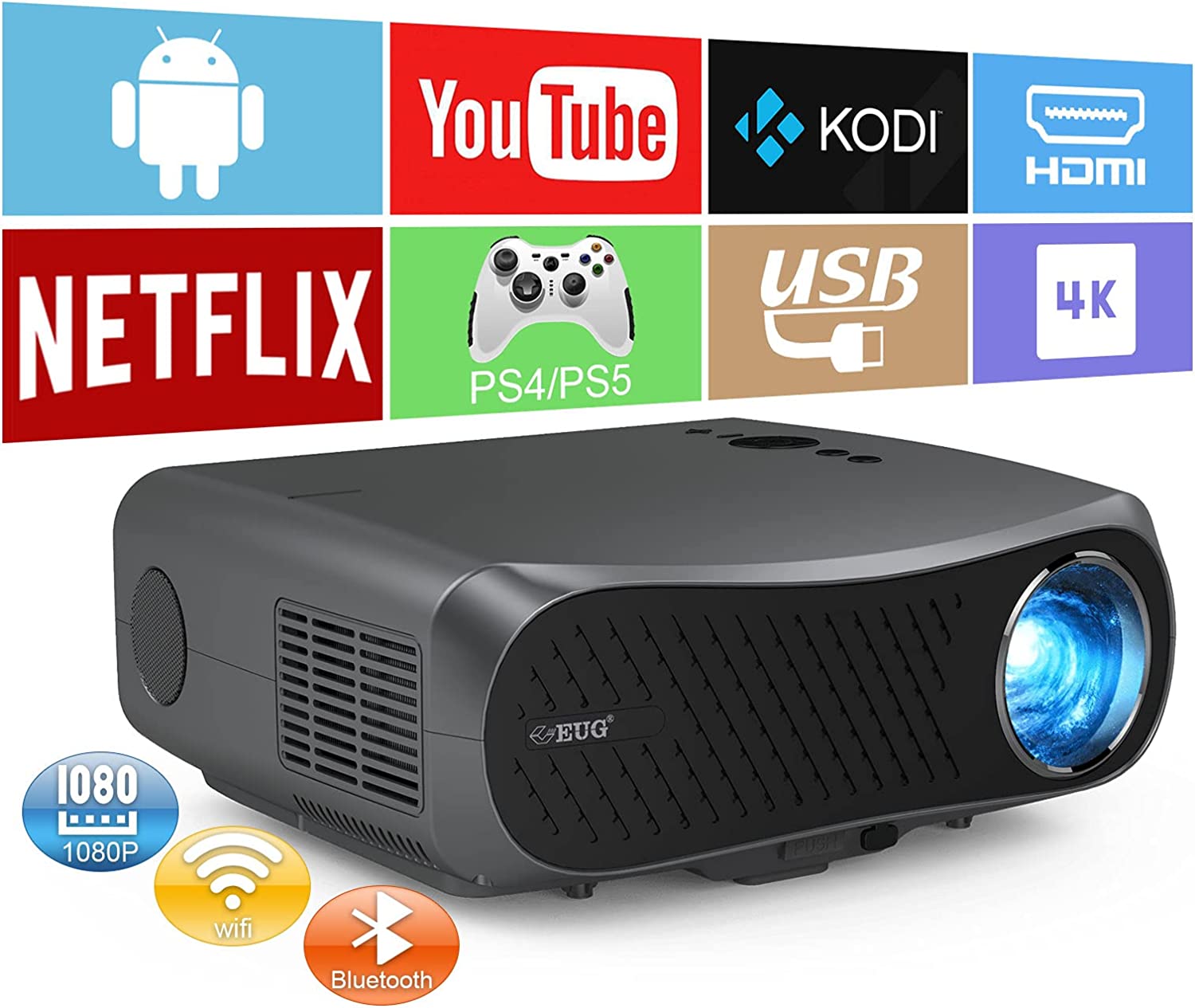 【Experience True-to-Life Picture Quality with Our Best-in-Class 4K Projector with Native 1920x1080p Resolution and 10,000 Lumens】It adopts 1080p physical resolution, 10,000:1 contrast, 90% NTSC, supports 4K inputs,empowers to sharper, and clearer images, for light-on viewing. 60% much better than other 1080p LCD projectors. 300'' pictures, professional15W hifi speakers, directly reduplicate cinema enjoyment. So ready to impress you with SPECTACULAR colors, and RICH details, scene by scene.