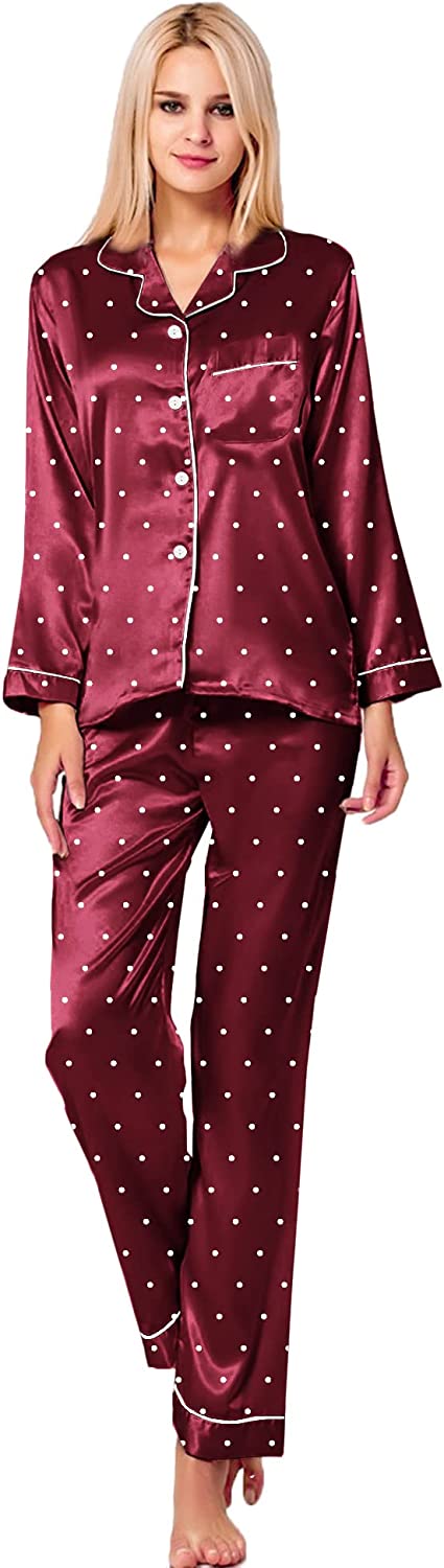 • Gift: Women's silk pajamas for women is made of high quality imitation silk fabric, it is soft and natural shiny. Great Choice For your Wife, Girlfriend, Mother, Sister and Doughter as a Birthday gift and Great Present for New Year, Valentine's Day, Christmas Day, Bridal Party Gifts, Honeymoon Vacation or other Festivals or Anniversaries.