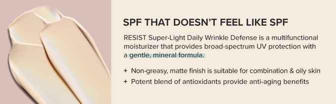 Paula's Choice RESIST Super-Light Daily Wrinkle Defense SPF 30 Tinted Matte Moisturizer with Antioxidants & Resveratrol is formulated to repair & renew sun damaged skin while preventing further damage, minus the white cast associated with most sunscreens.