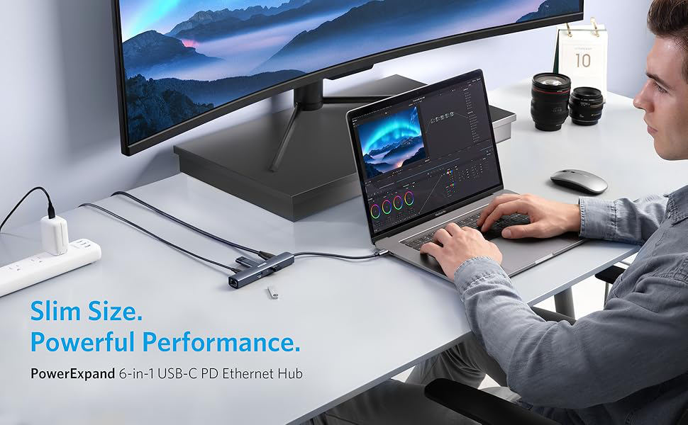 With a total of 6 ports, you can expand the functionality of your laptop’s single USB-C port to include Power Delivery pass-through charging, media display, ethernet connectivity, and data transfer.