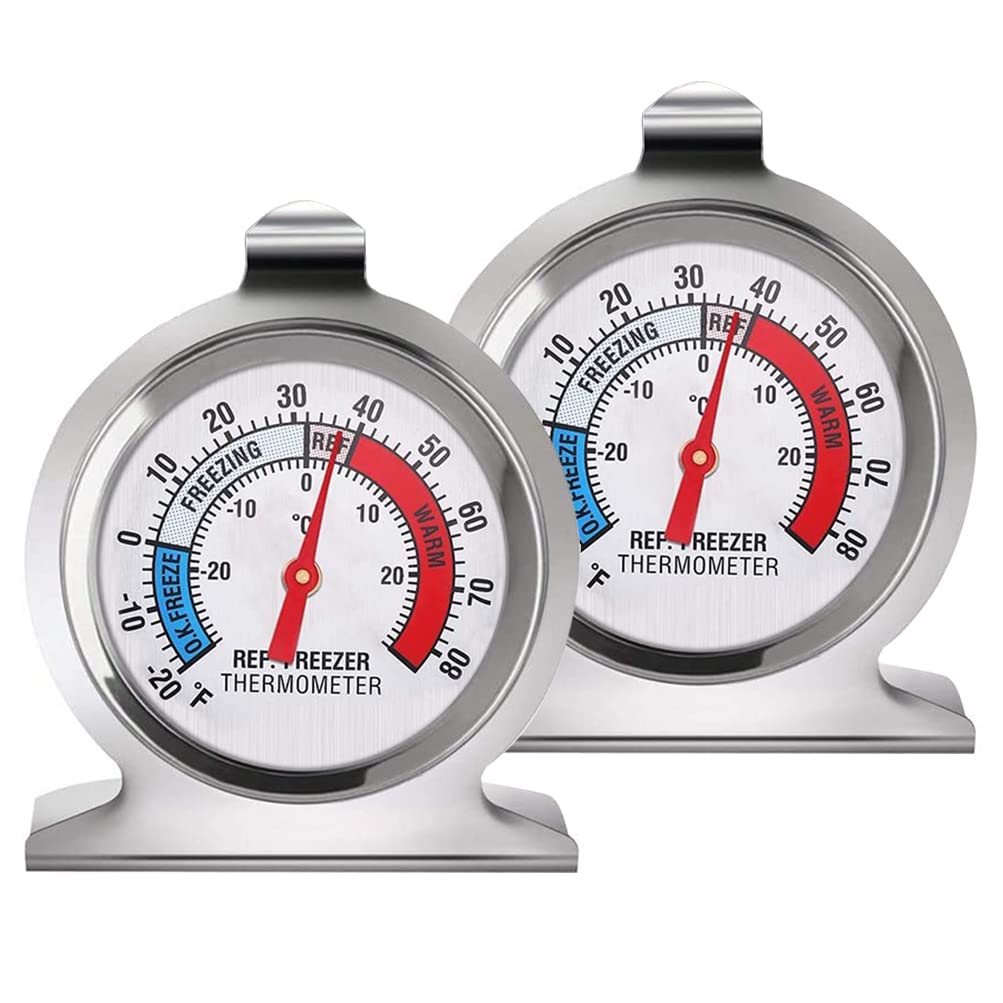 Refrigerator Thermometer, 2 Pack Fridge Thermometer Stainless Steel Freezer Thermometer with Red Indicator, Large Dial Thermometers for Freezers Monitoring Thermometer for Home, Kitchen, Restaurants