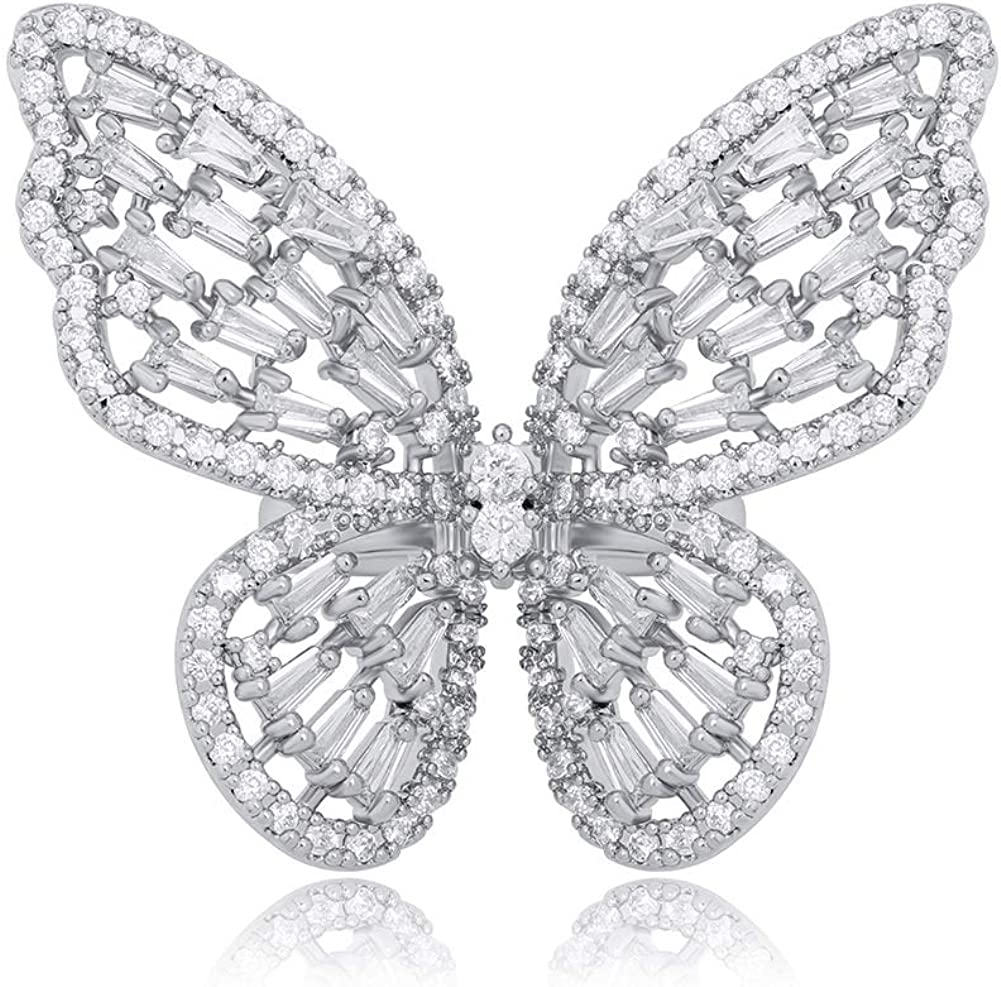?[Hypoallergenic Rings]- This cz butterfly ring made of environmentally friendly brass is plated by three silver finishing layers, lead-free, nickel free and cadmium free, will not allergy for your skin and no harm your health
