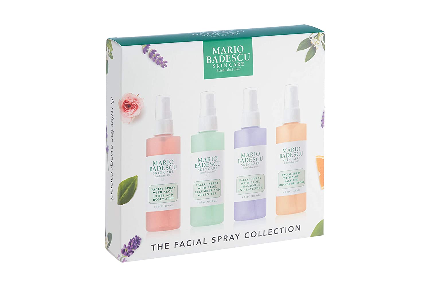 Mario Badescu Facial Spray Collection with Rose Water, Cucumber, Lavender and Orange Blossom, Multi-Purpose Cooling and Hydrating Face Mist for All Skin Types, Dewy Finish