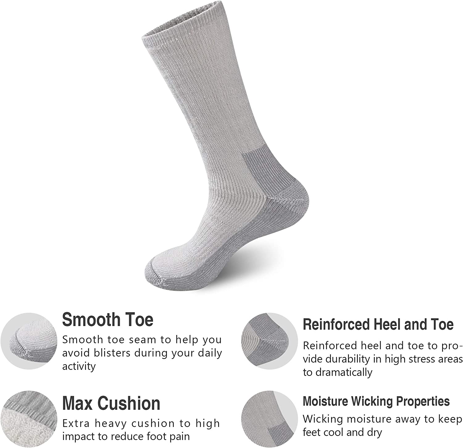 GKX Men's Merino Wool Moisture Wicking Outdoor Hiking Heavy Duty Work Cushion Crew Socks