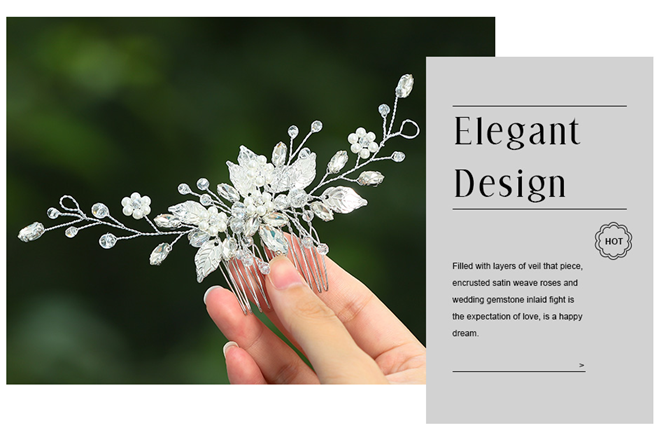 No matter what hairstyle you have and any length of hair,crystal hair comb can decorate your hair well.Simple yet elegant to decorate any updo on wedding day,which helps to get a lot of accompliments.