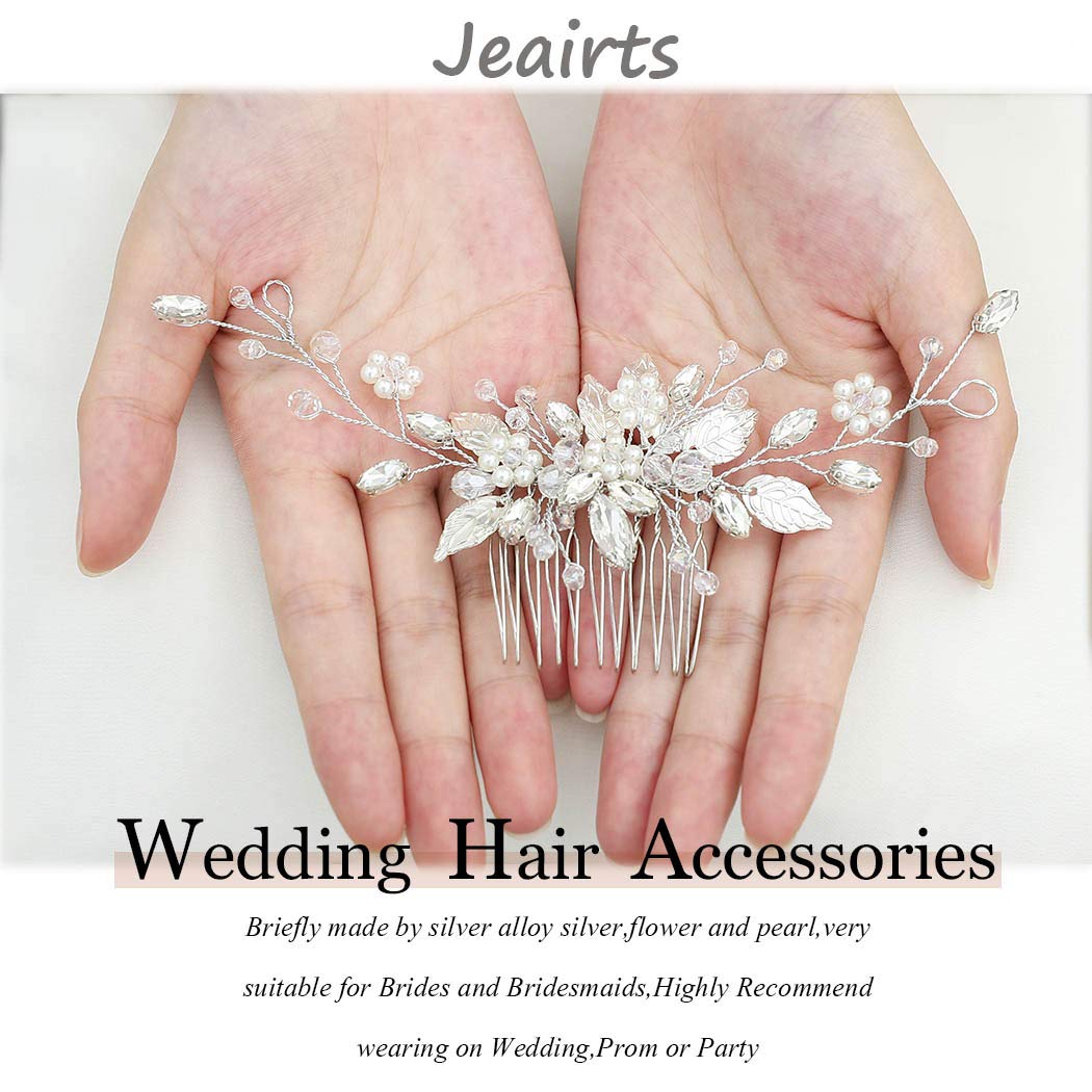 Jeairts Leaf Bride Wedding Hair Comb Rhinestone Pearl Bridal Hair Pieces Flower Wedding Headpiece for Brides Crystal Hair Accessories for Women and Girls (1-Silver)
