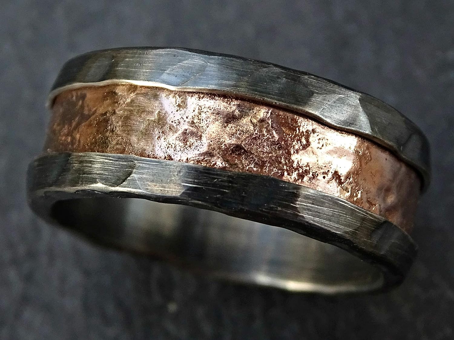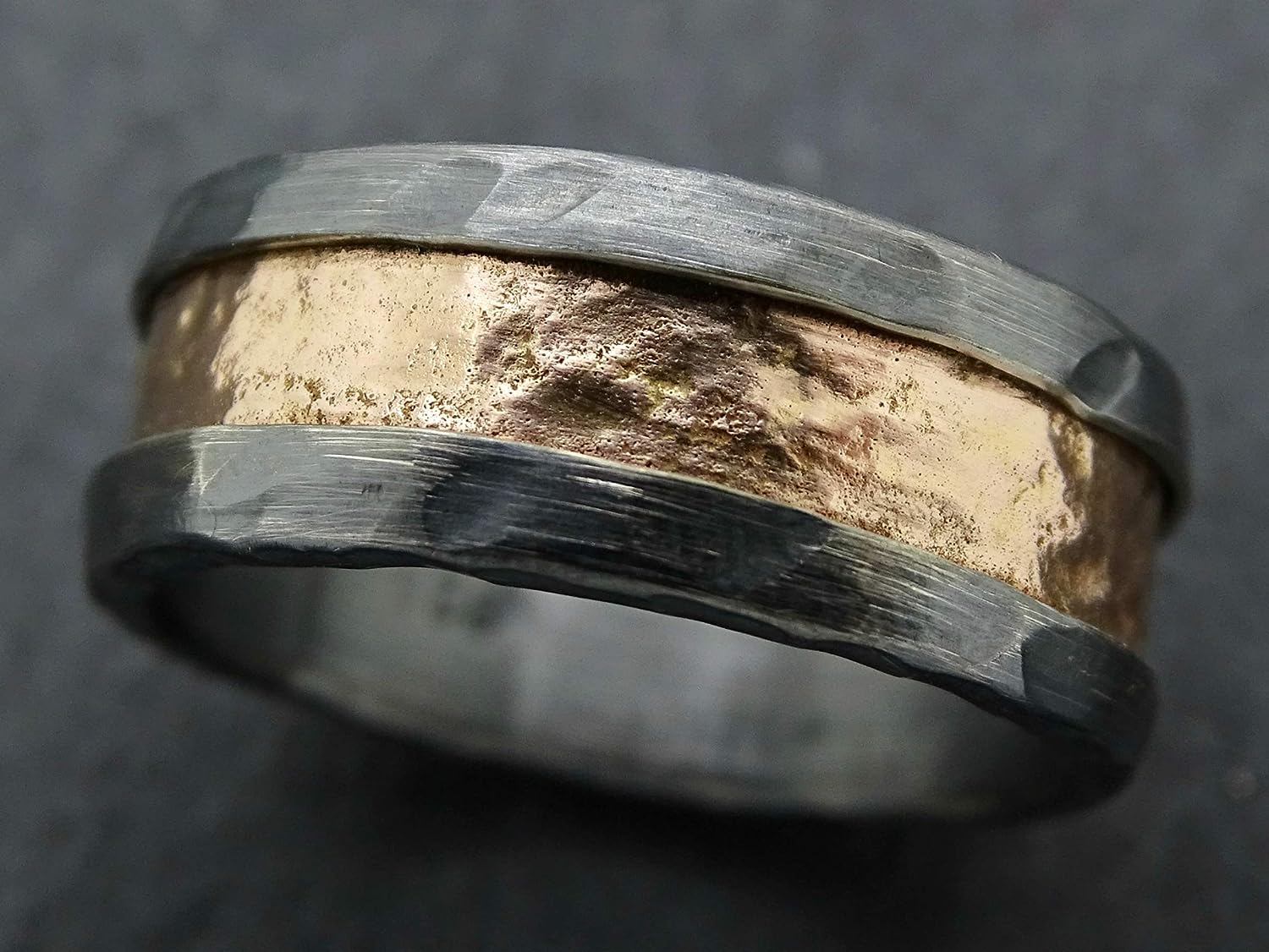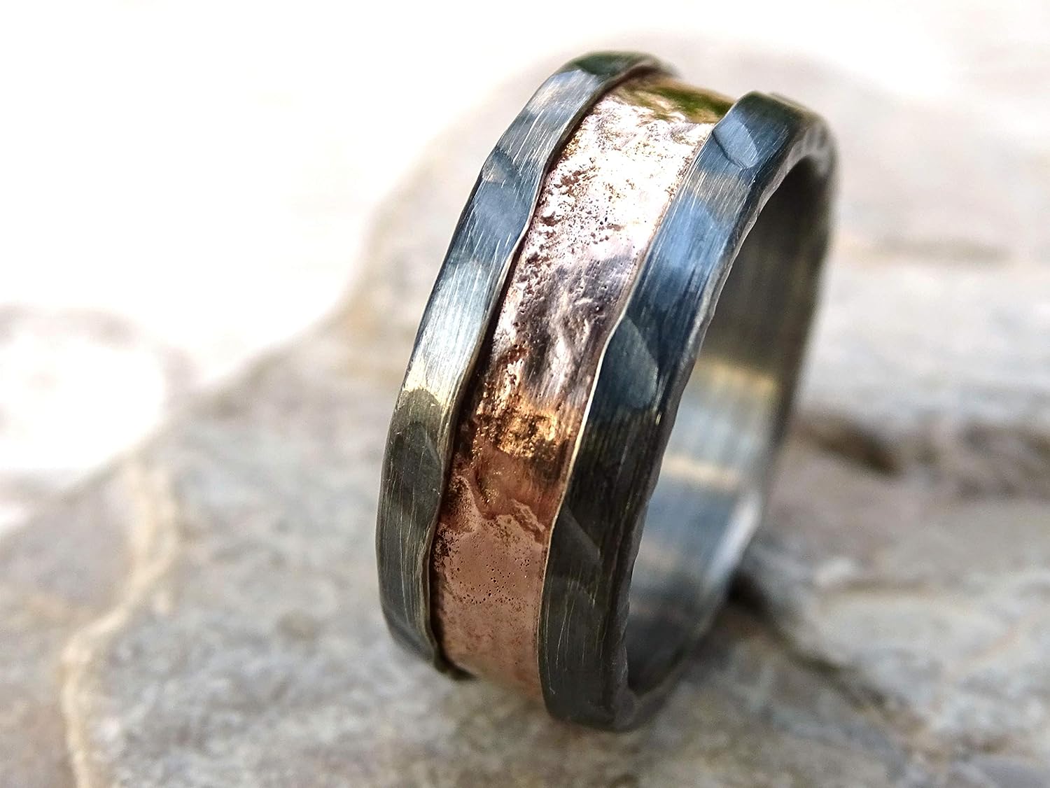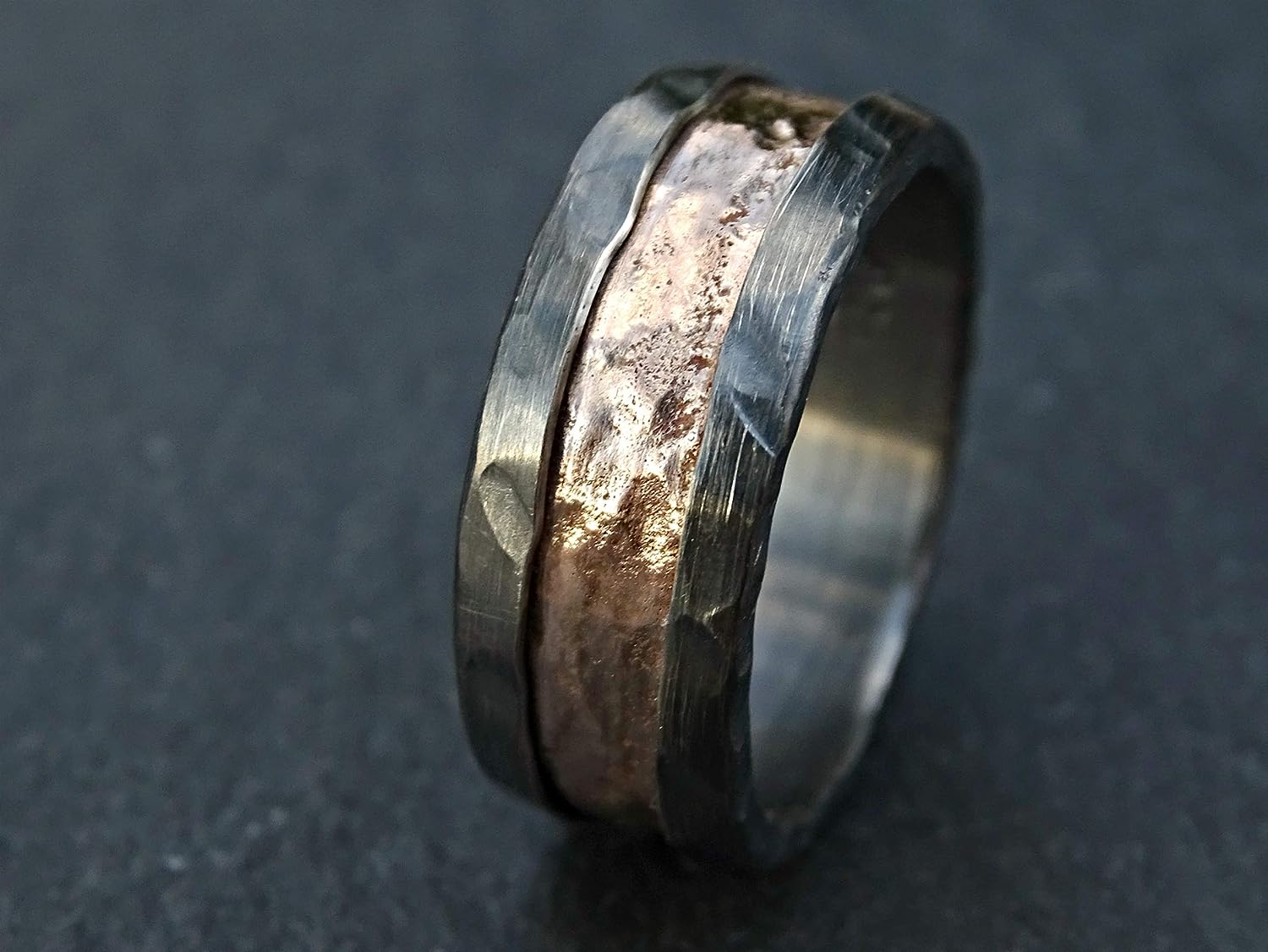 viking wedding ring rose gold, mens wedding band viking gold ring mens engagement ring, molten gold silver ring for men, unique mens gift