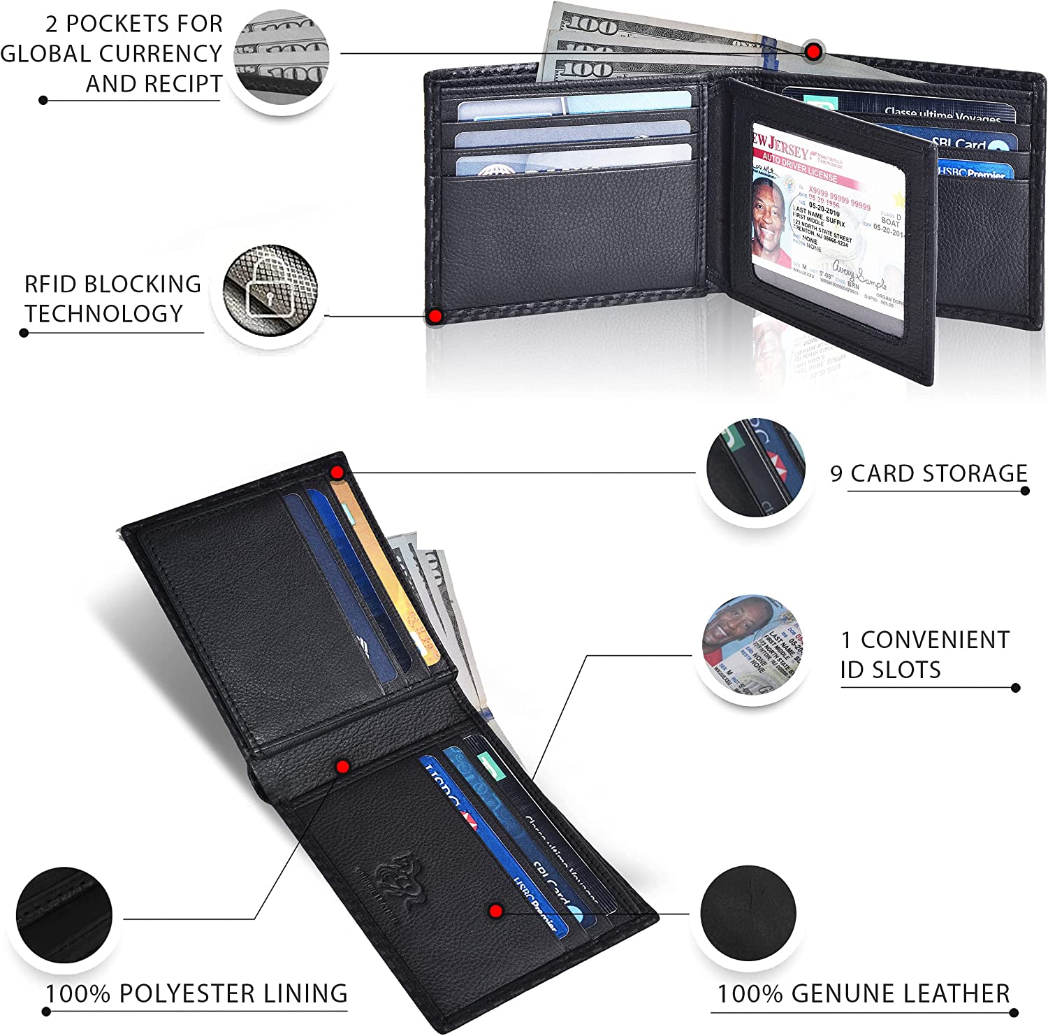 - EXCELLENCE OF CRAFTSMANSHIP DELIVERED – This leather bifold wallet is a true minimalist with a rich and premium feel of leather. The wallet shines out with your personality and makes a good companion which lasts long. This bifold has a minimalist design but with an impressive capacity. 9 credit cards, 1 ID card holder, 2 currency bills compartment and 2 documents holders and yet measures only 3.5 x 4.35 x 0.75 inches.