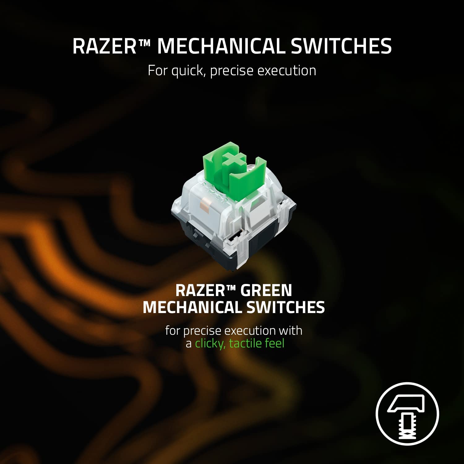 Razer Yellow Mechanical Switches: Built for speed with an actuation point of just 1.2mm, these smooth switches have no tactile feedback and include sound dampeners to reduce its already low sound profile even further.