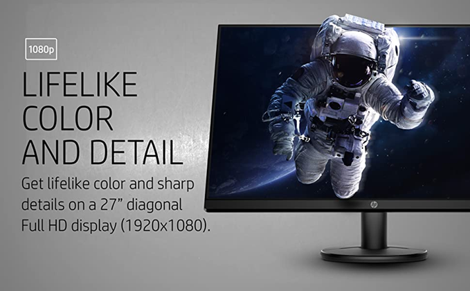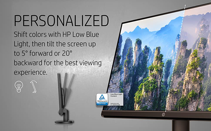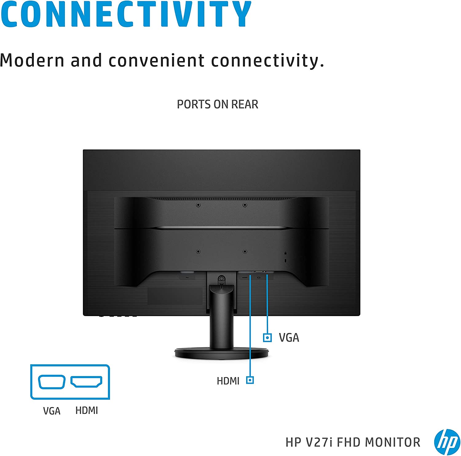 See life-like color and details in crisp FHD quality with the HP V27i FHD Monitor. The 27” diagonal screen uses the 3-sided micro-edge design and IPS display with 178° viewing angles to give you a clear view from anywhere. Not only that, but adjust the tilt for a personalized experience. HP’s Low Blue Light setting, ENERGY STAR® Certified, and quick access to HDMI and VGA ports are features perfect for a modern, work-from-home setup.
