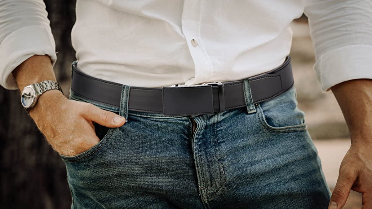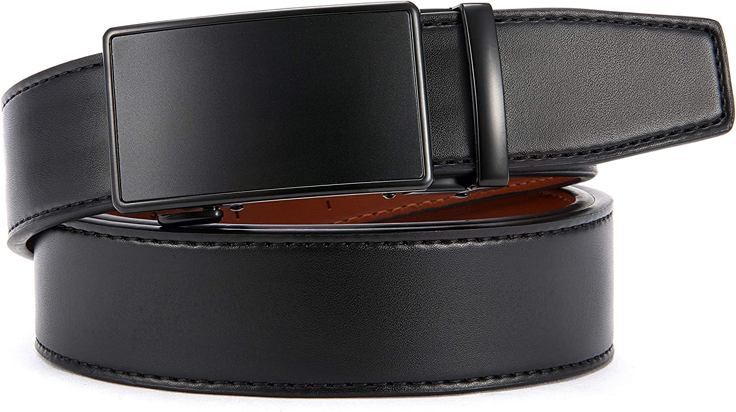 EASY TO USE - Slide the leather belts for men into the buckle, and click on the buckle to lock it automatically. Gently push the lever on the side of the automatic buckle, and pull the casual belt to release. Simple, smooth, and sleek!