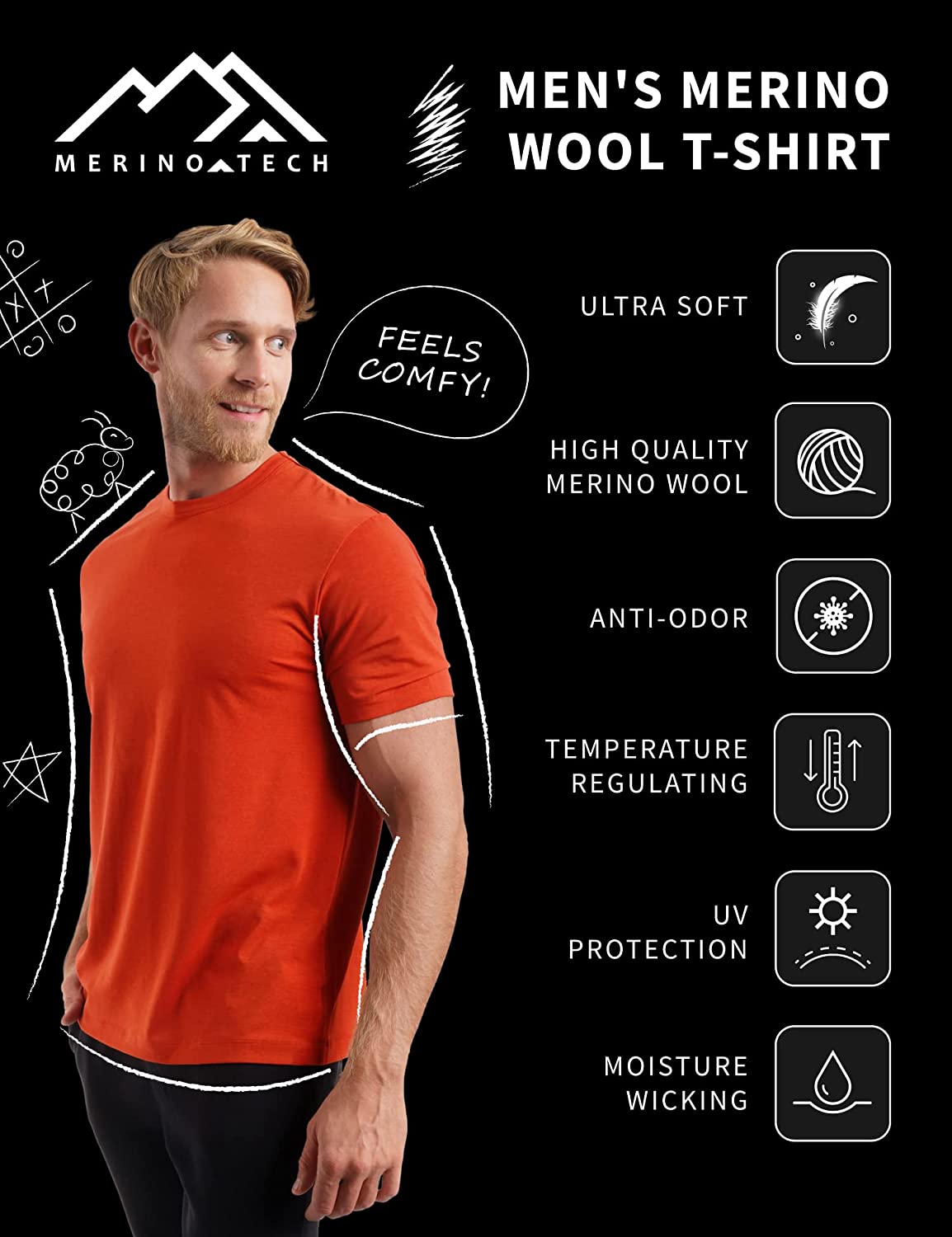 LIGHTWEIGHT & BREATHABLE – Package includes Merino Wool T Shirts For Men Lightweight 165 g/m². MAKES A GREAT GIFT!