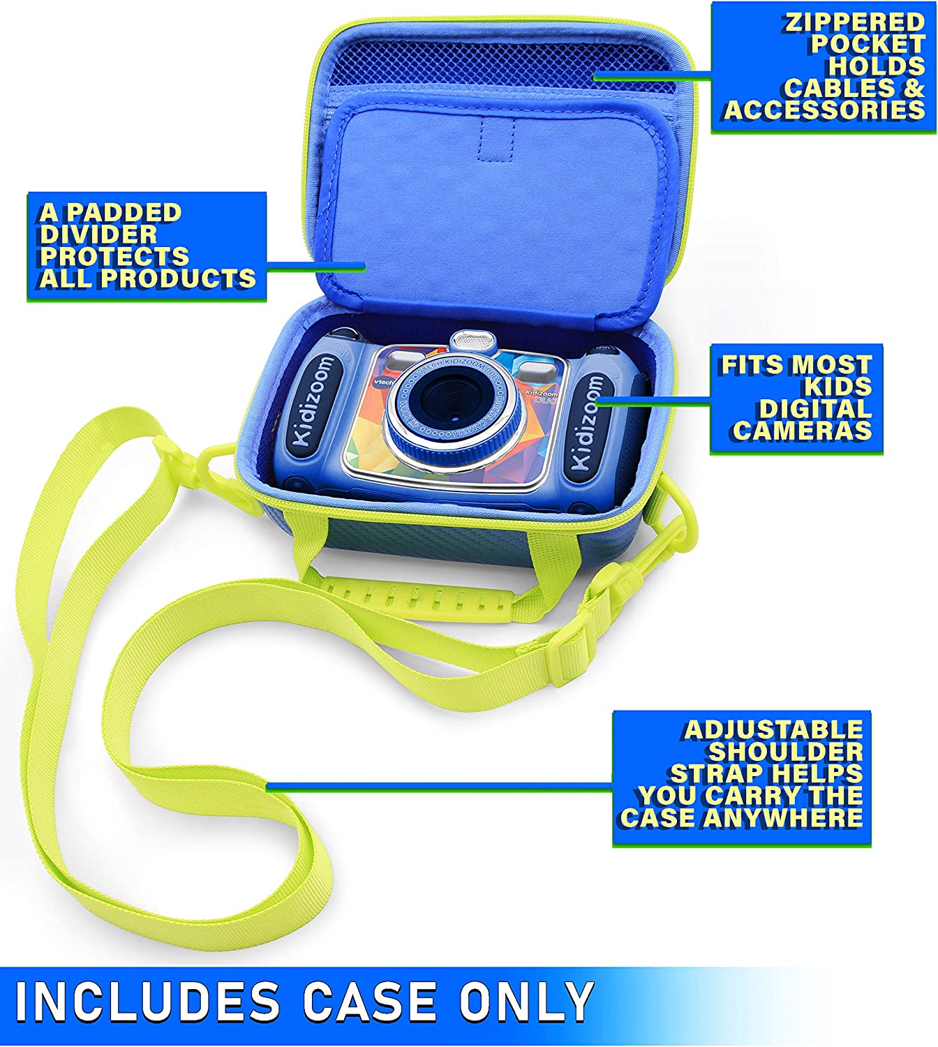 CASEMATIX Camera Case Compatible with VTech KidiZoom Camera and Camera Accessories with Shoulder Strap and Padded Interior Divider, Blue Travel Case Only