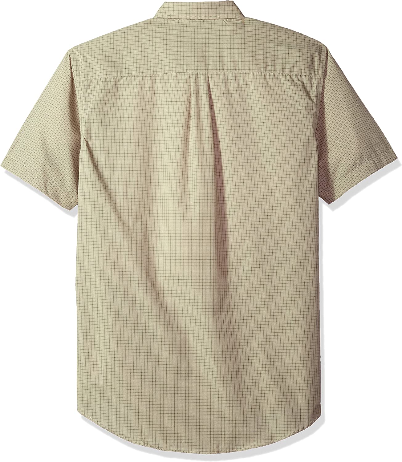 Trains, planes and automobiles are no match for this Van Heusen button down shirt. Its wrinkle-resistant finish makes it easy to move through your day with confidence and a classic pattern adds versatility to this short-sleeve style.
