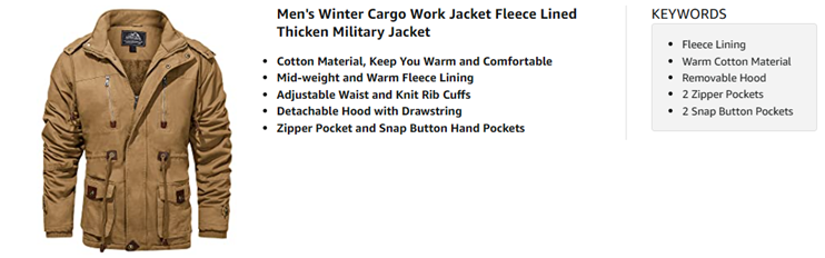 Mens Winter Jacket Featues mid-weight and Warm Fleece Lining, Elastic Waist and Knit Rib Cuffs