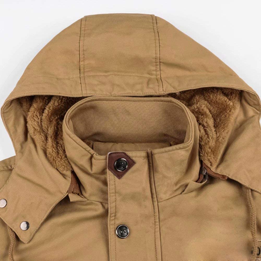 MAGCOMSEN Men's Winter Cargo Work Jacket Fleece Lined Thicken Military Jacket with Removable Hood