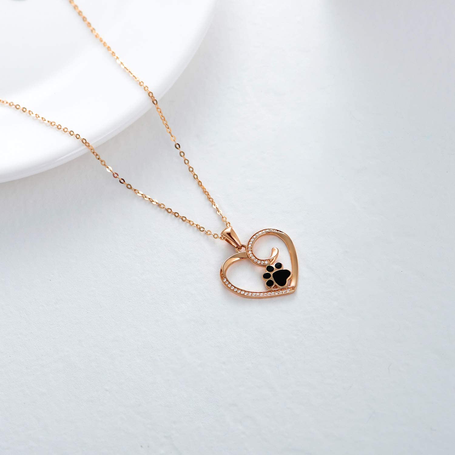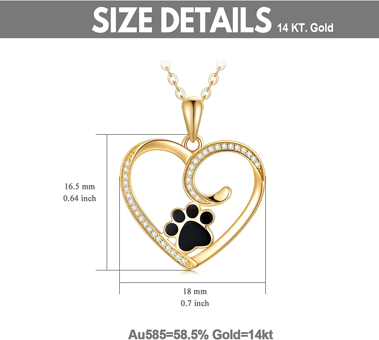 • 【Design】Black paw love heart pendant decorated with many bright created moissanite stone, this gold love jewelry is a gift for animal lover.