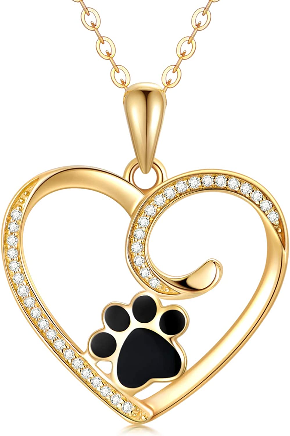 SISGEM 14k Gold Heart Pendant Necklace for Women, Real Gold Dog Cat Paw Print Jewelry Gifts for Her, 16-18 Inch