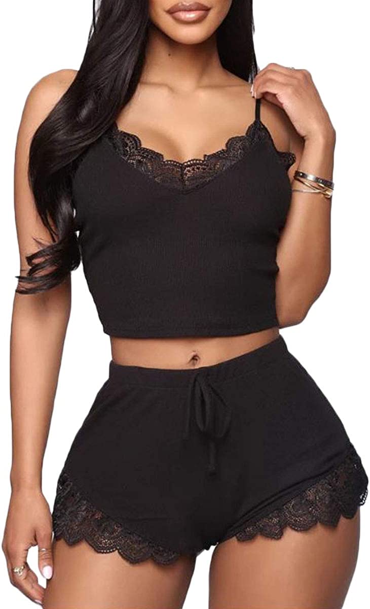 Pajama Top: Sleeveless pajama set and V-neck with lace trim, adjustable strap.Classic PJ sets in casual style , easy fit and lightweight