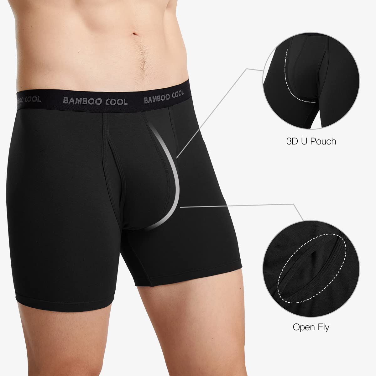 BAMBOO COOL Men's Underwear Boxer Briefs Pack Bamboo Viscose Soft Breathable Long Underwear Trunks